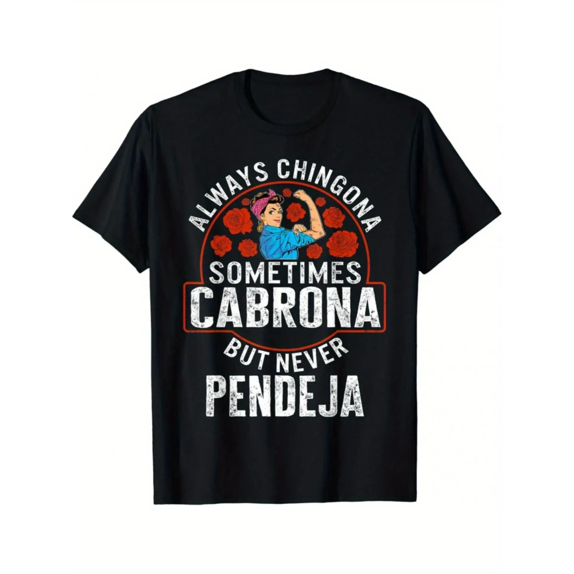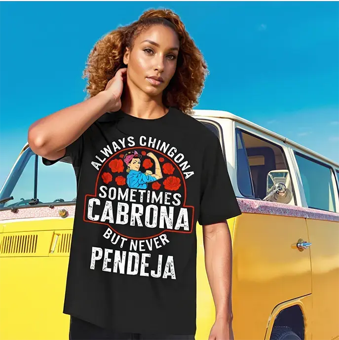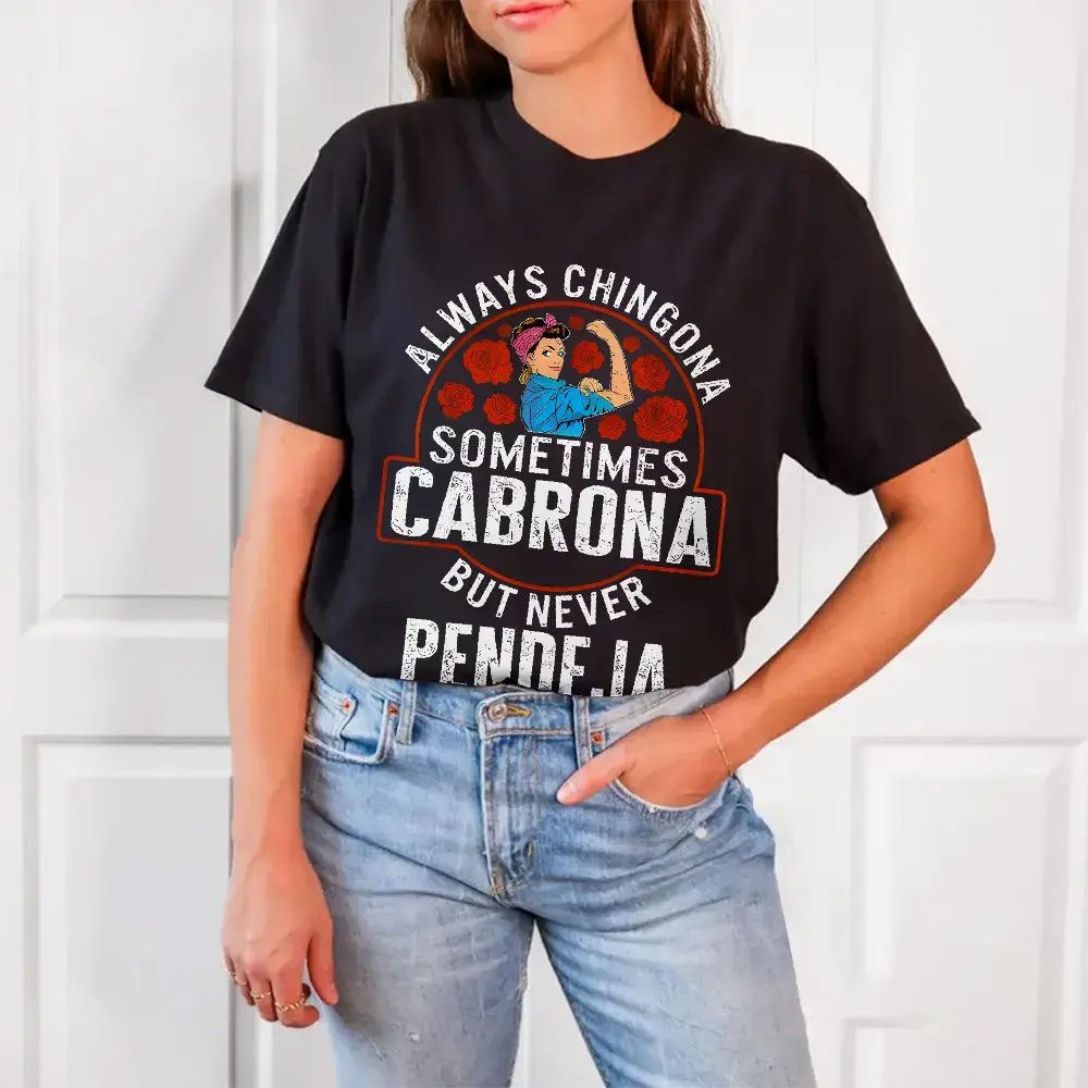 Custom Always Chingona, Sometimes Cabrona, But Never Pendeja Prints Trendy Fashion Best Gift Choice Birthday Gifts Comfortable Cotton T-Shirts, Crew Neck and Short Sleeve T-Shirts, Casual and Street