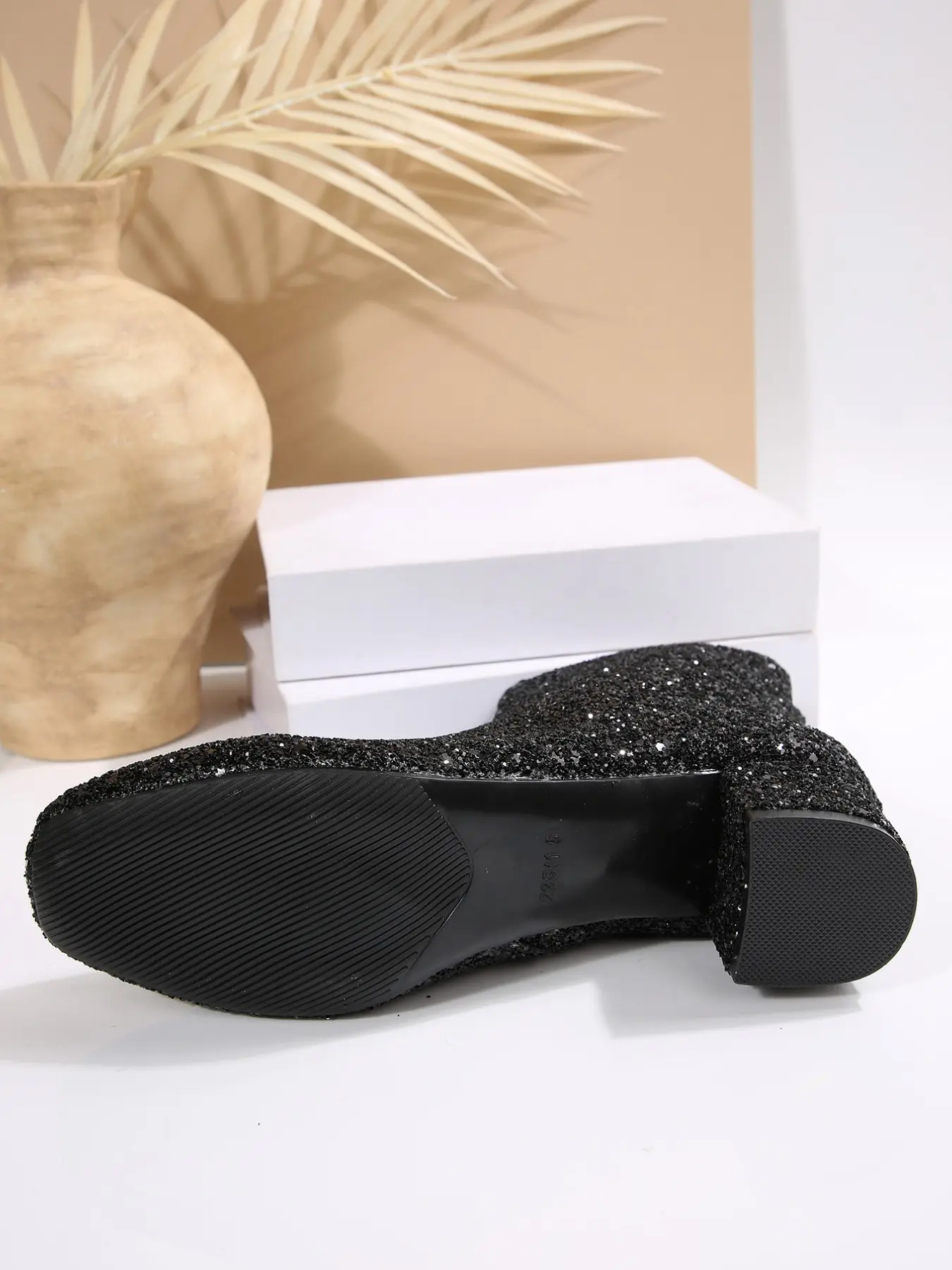 【Sequined Detailing】: Covered entirely with sequins, these boots add a sparkling touch perfect for evening events.