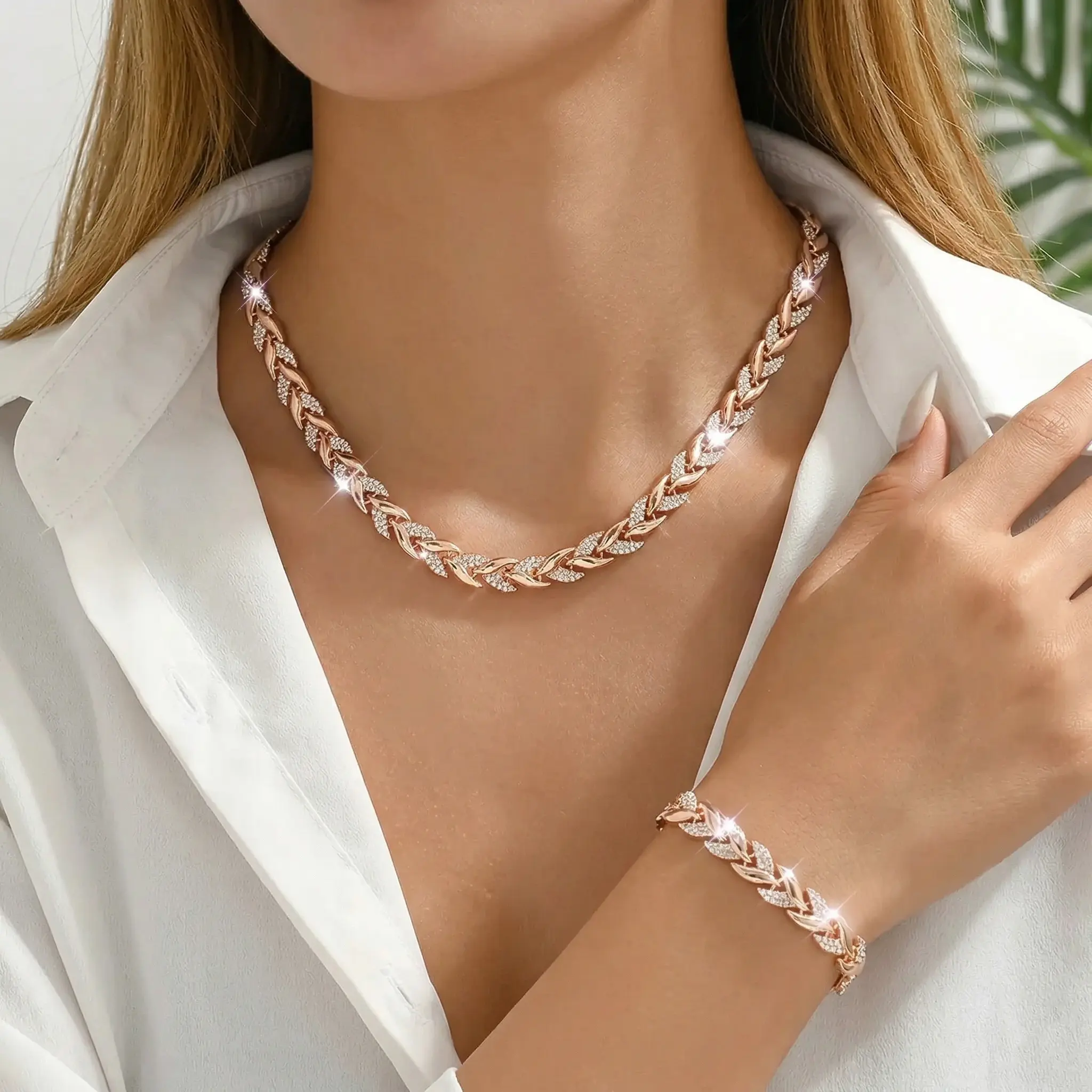 Elevate your look with this Elegant Fishtail Jewelry Set for Women, featuring a beautifully matched bracelet and necklace designed for a refined, light luxury style.Adorned with sparkling glass rhinestones, this set adds a graceful shine that enhances any outfit.