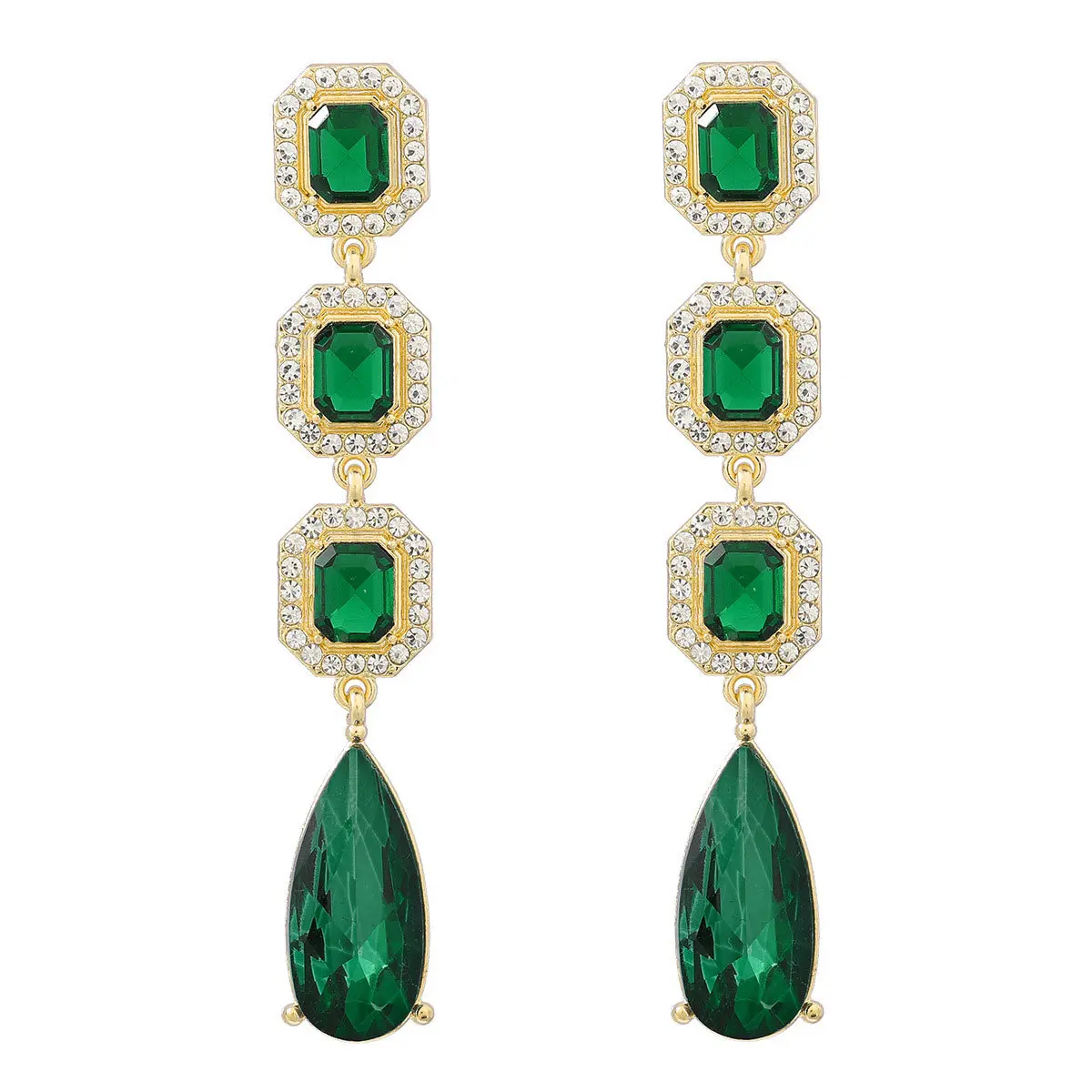 European and American fashion-inspired, premium-designed long-drop-shaped crystal earrings with a dazzling shine. Elegant, versatile, and perfect for cross-border purchases.
