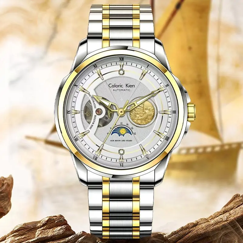 This watch is a standout accessory for both professional and social settings. Its design ensures it stands out while maintaining a sophisticated look. Experience the blend of functionality and luxury with the Caloric Kien Explorer Series.