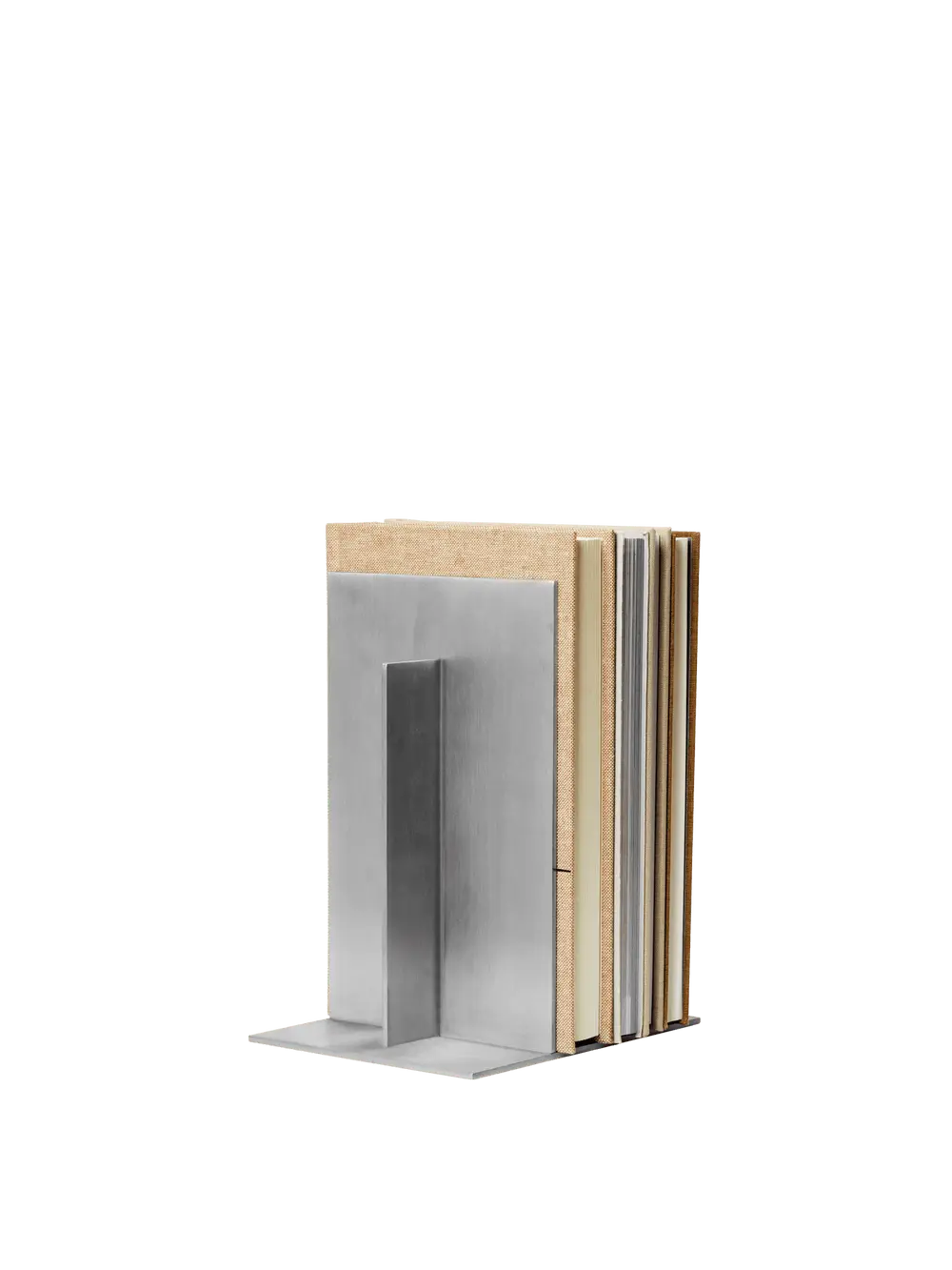 The Lager Bookends are a set of two brushed aluminium bookends with a bold geometric form that works as hard decoratively as it does functionally. Clean, industrial and quietly commanding - the kind of shelf accessory that makes everything around it look more considered.