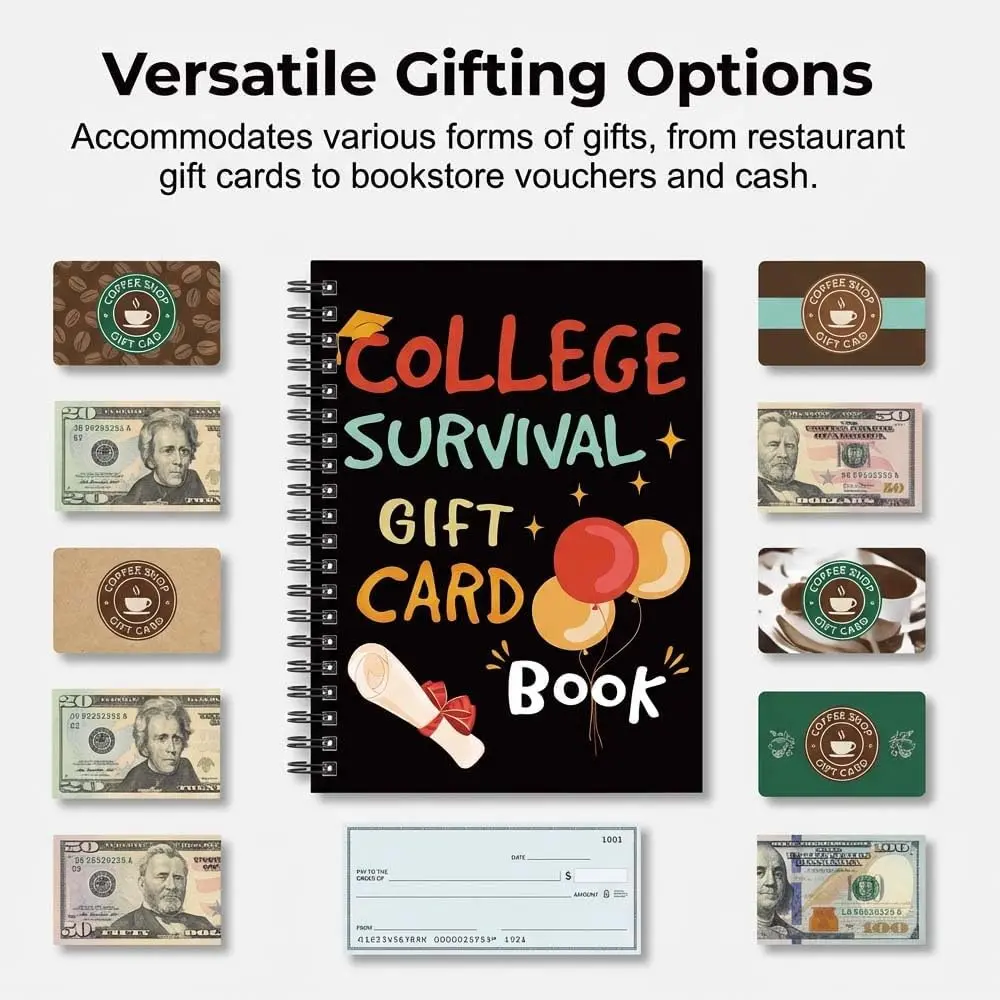 College Survival Gift Card Book 2026, 7 x 5 Inch College Gift Card Book,Graduation Gifts CardBook Colleges Survival Booklet Organizer Leaving Home Care Package Cash Holder (1)