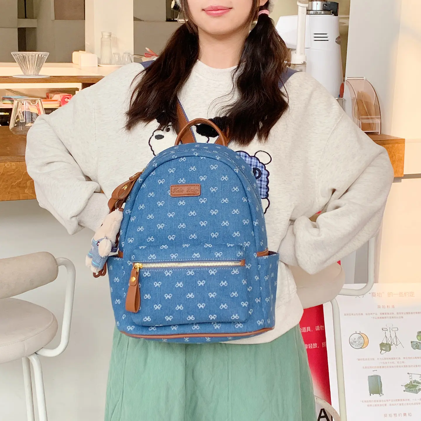 Korean-style fashionable trendy women's backpack, stylish and cute with a bow, student schoolbag, 2026 new model, cross-border women's bag
