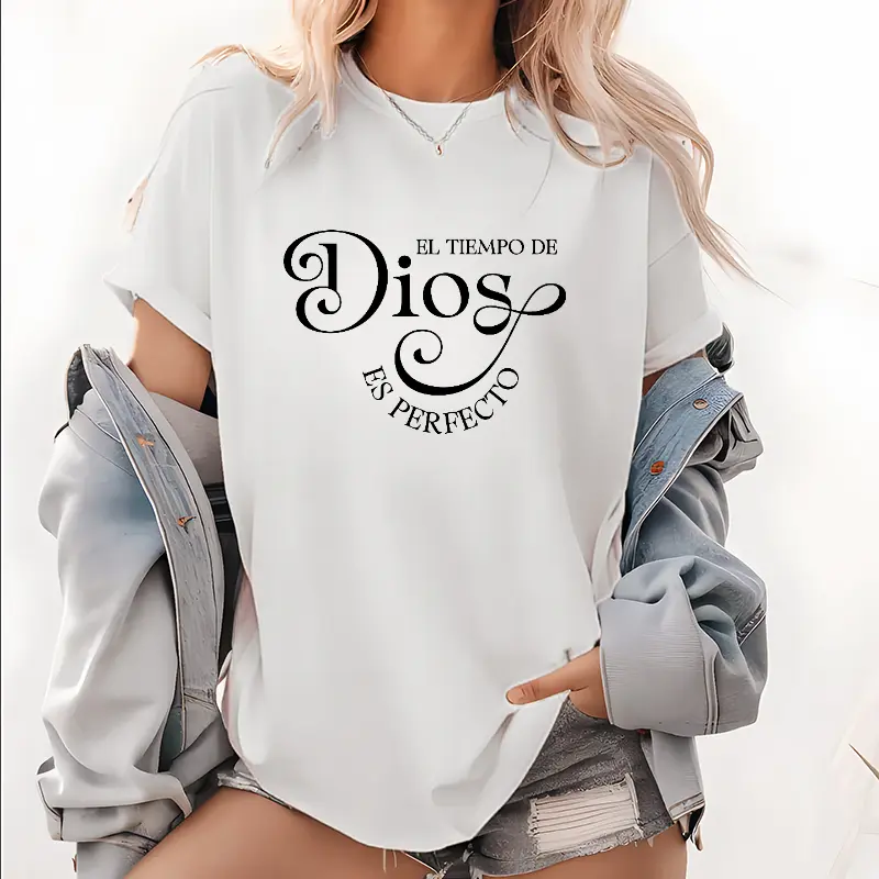 Women's Soft Short Sleeve T-Shirt - "El Tiempo De Dios Es Perfecto" Print, Black, Comfortable & Stylish Pullover for Spring/Summer