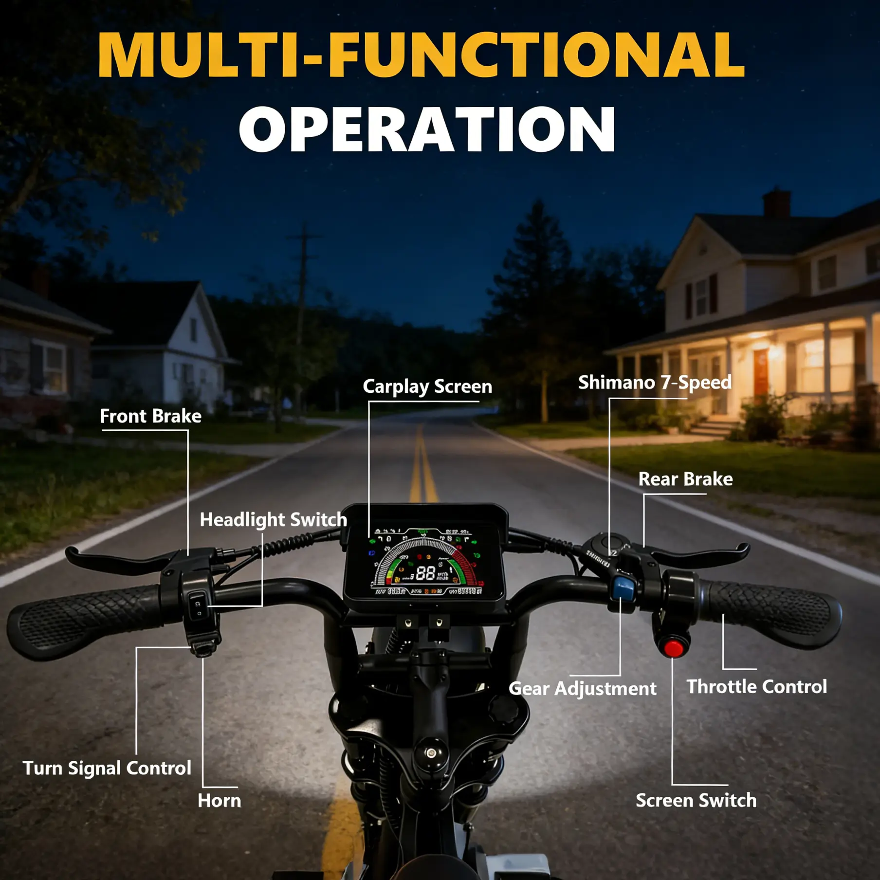 1500W Peak Motor | 48V 15Ah Battery | CarPlay Display | Dual Dash Cam | UL Certified