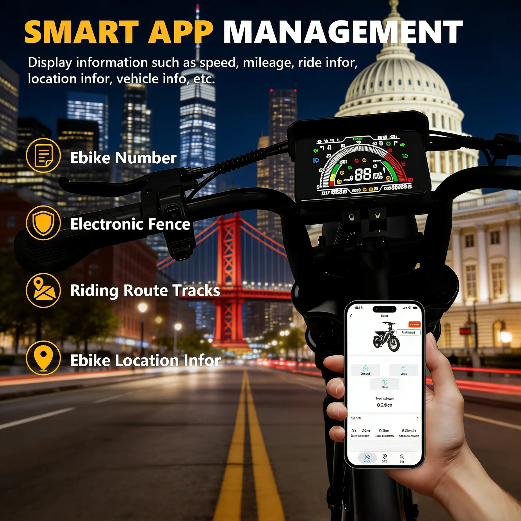 ·Real-time data: speed, battery, mileage, riding mode