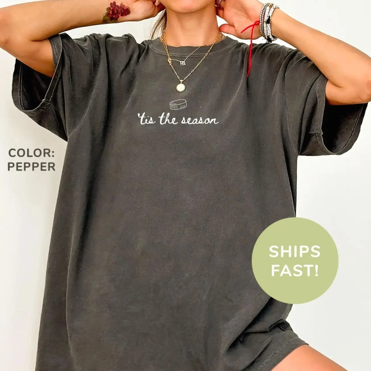 Comfort Colors ’Tis The Season Hockey Puck Shirt Hockey Player Shirt Hockey Mom Shirt Game Day Shirt Sports Mom Shirt Hockey Shirt - Trendy Fashion USA