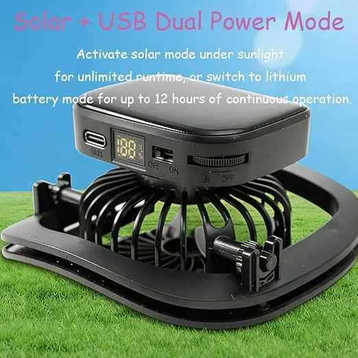 Dual Power Supply – Charge via solar or USB. A full 2-hour charge delivers up to 16 hours of continuous cooling—no more dead batteries!