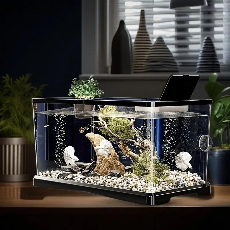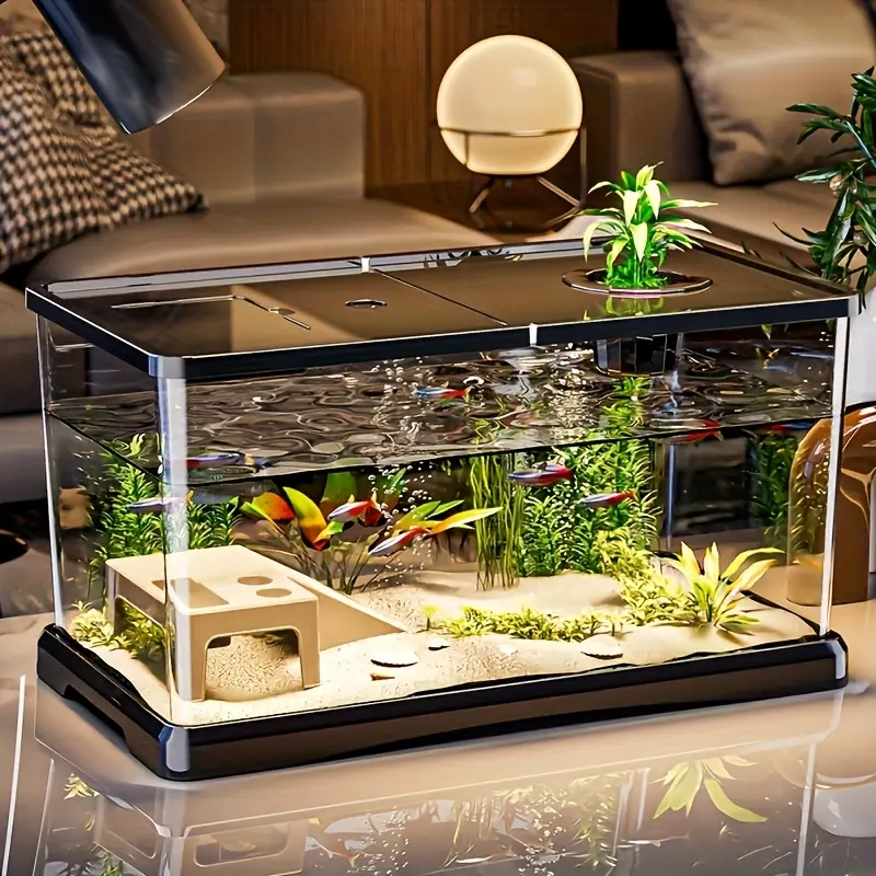 Aquarium starter kit, modern fish tank, transparent rectangular fish tank with lid - high-quality ABS material, medium/small size available. Suitable for freshwater fish, goldfish, and aquatic plants, modern and durable home decoration, easy to clean.