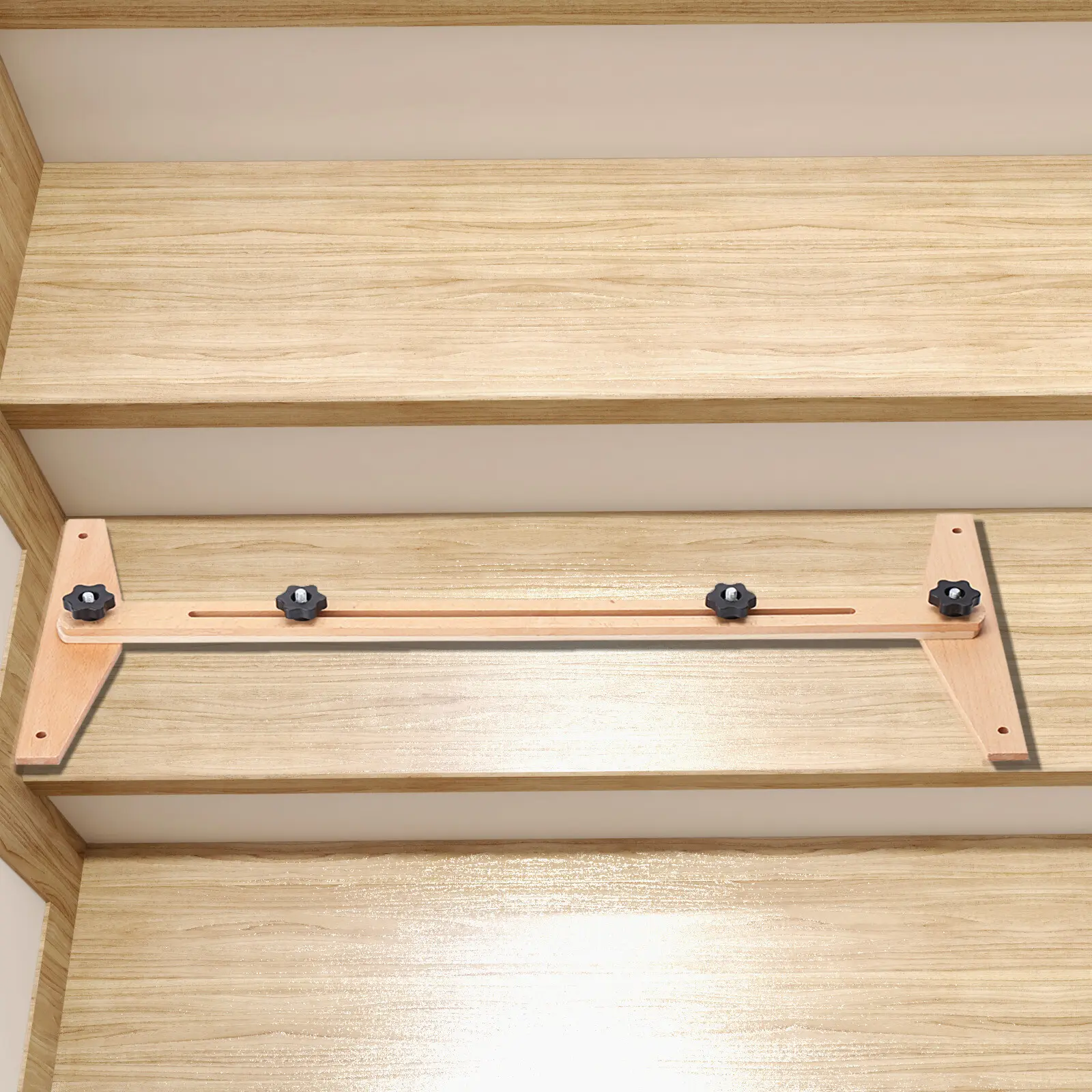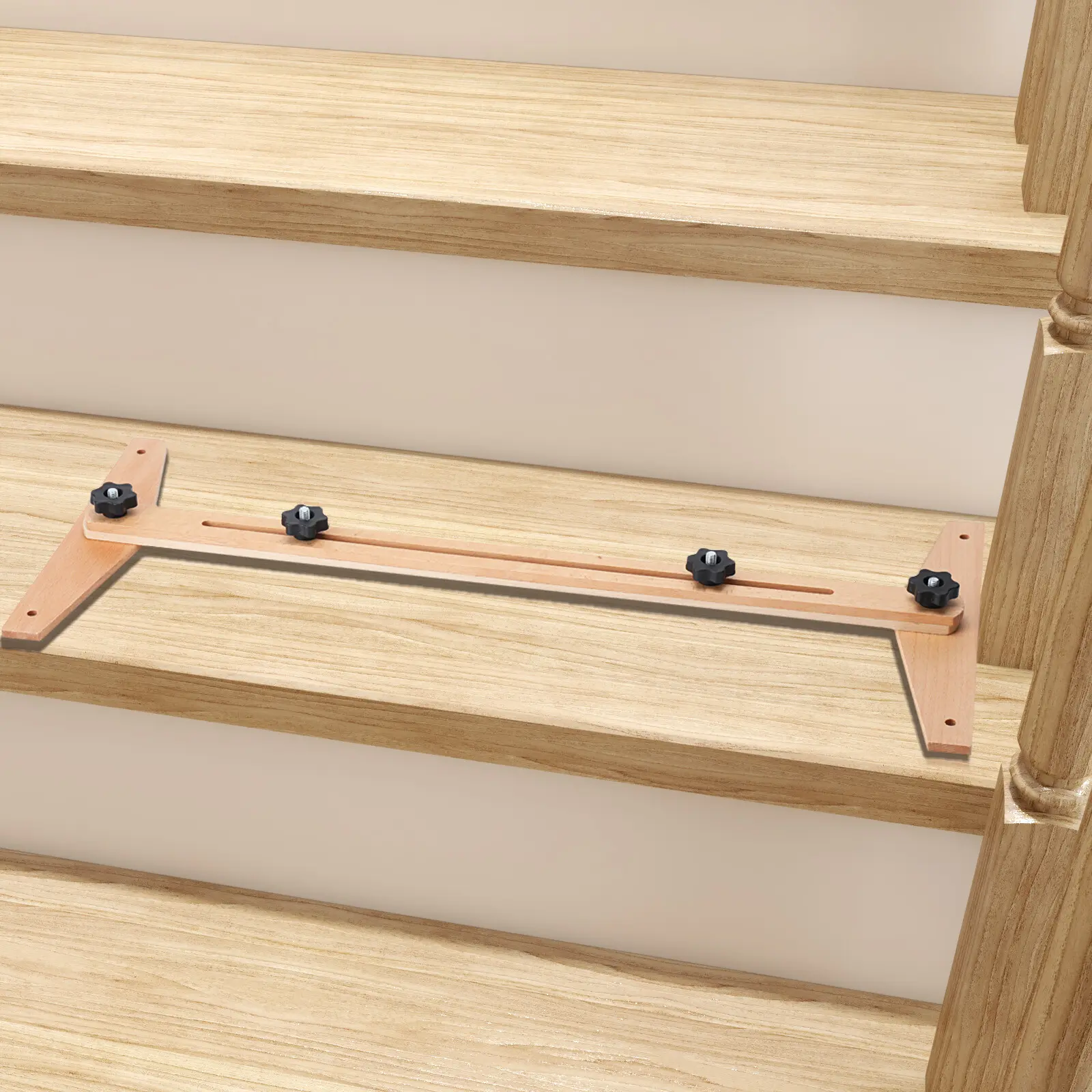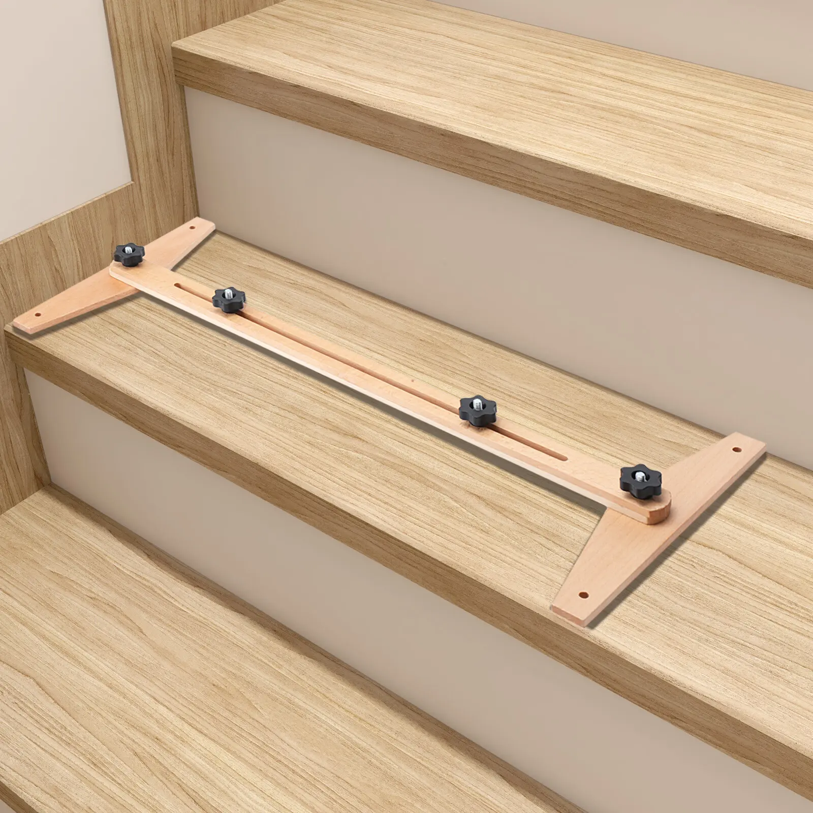 Accurate Measurement: After Snapping the Left and Right Ends of This Ruler Firmly in the Middle of the Stairs, It Will Accurately Measure the Width of the Stairs. Then You Can Choose the Right Width of Stair Boards or Slabs According to the Measured Width. Length Adjustable: This Ruler Has a Measuring Range of 30-49 Inches. You Can Adjust the Two Knobs in the Middle to Change the Length of the Ruler for Different Measurement Needs. This Is Very Practical and Convenient. Adjustable Measuring Angle: the Two Ends of This Ruler Can Be Rotated Within 270 Degrees. so You Can Adjust the Two Ends to a Suitable Angle According to Your Own Measurement Needs. Great Durability: This Ruler Is Made of High-quality Birch Wood. This Natural Wood Is Not Only Hard but Also Anti-corrosive and Environment-friendly. so the Rulers Made of It Have a Long Service Life. High Stability: the 4 Knobs Can Firmly Lock the Ruler in the Right Position, so It Won't Move During the Measurement. Easy to Install: If You Twist the Knob Clockwise, It Will Be Tight. on the Contrary, It Will Become Loose. by Turning These Knobs, You Can Easily Remove and Install This Ruler.