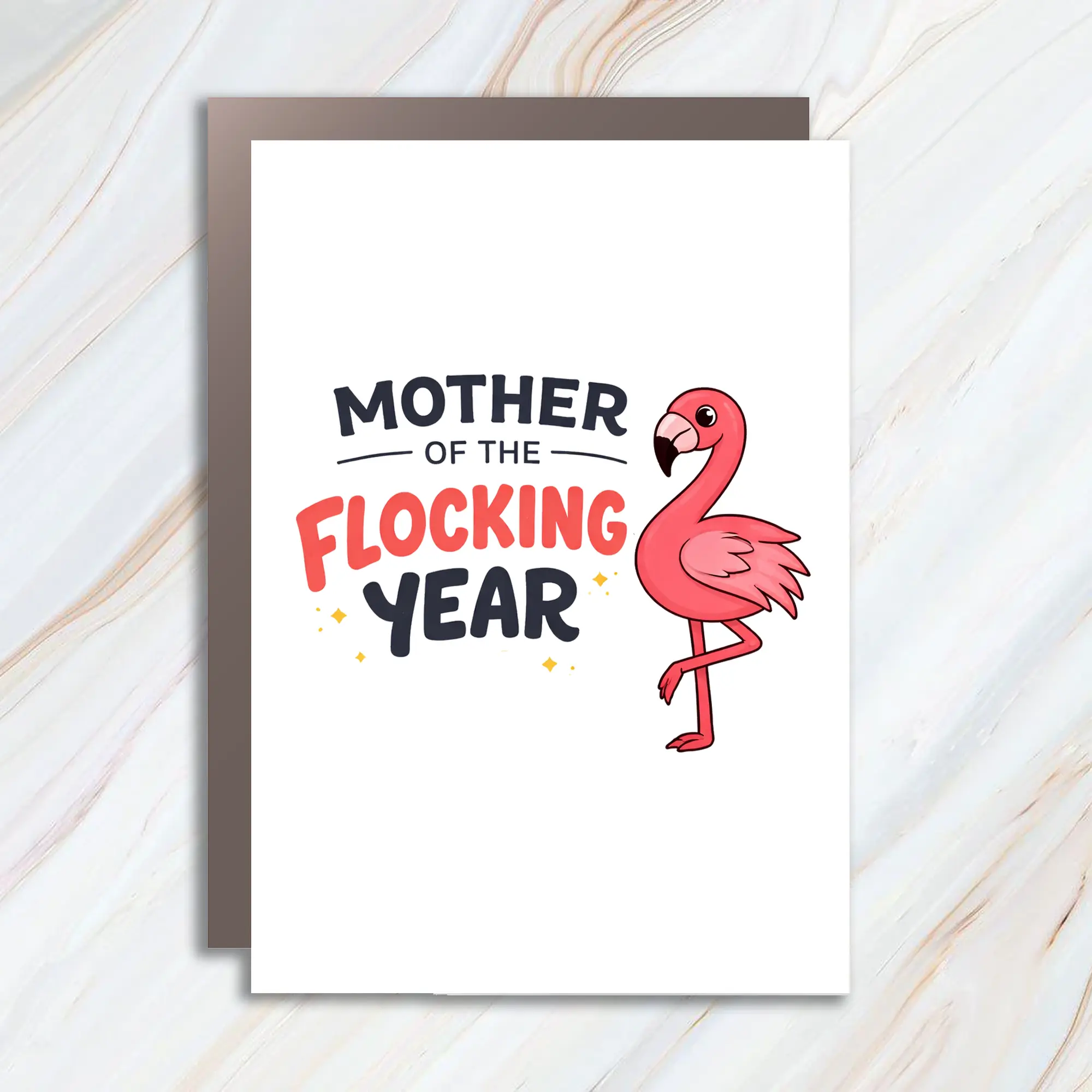 Mother Of The Flocking Year Flamingo Greeting Card, Play On Words, Mother's Day, Animal Puns, Funny Love MC50