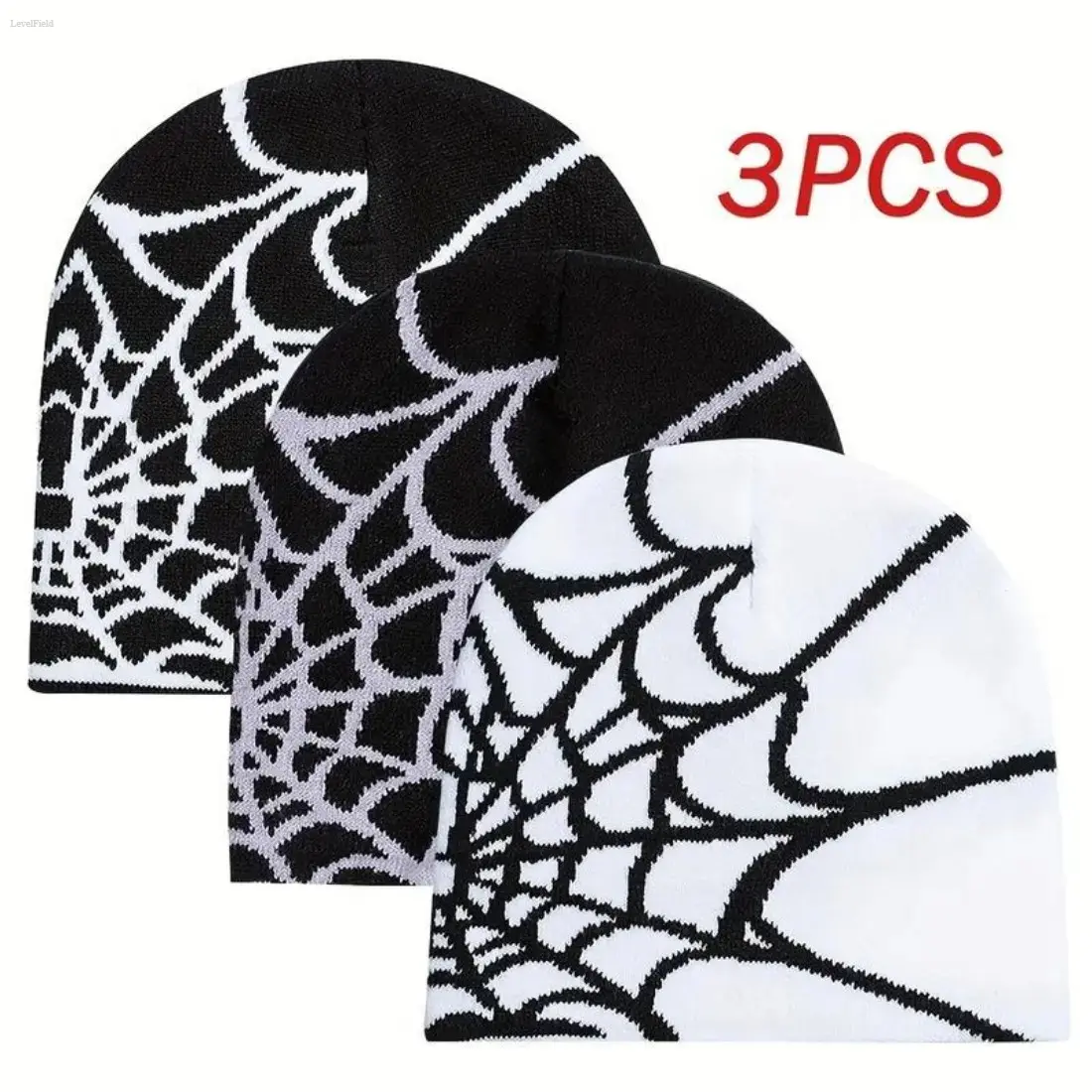 3pcs Winter Knitted Beanie Set – Hip Hop & Gothic Streetwear Hats, Warm Handmade Funky Design, Machine Washable Essentials for Men & Women, Perfect for Cold Weather