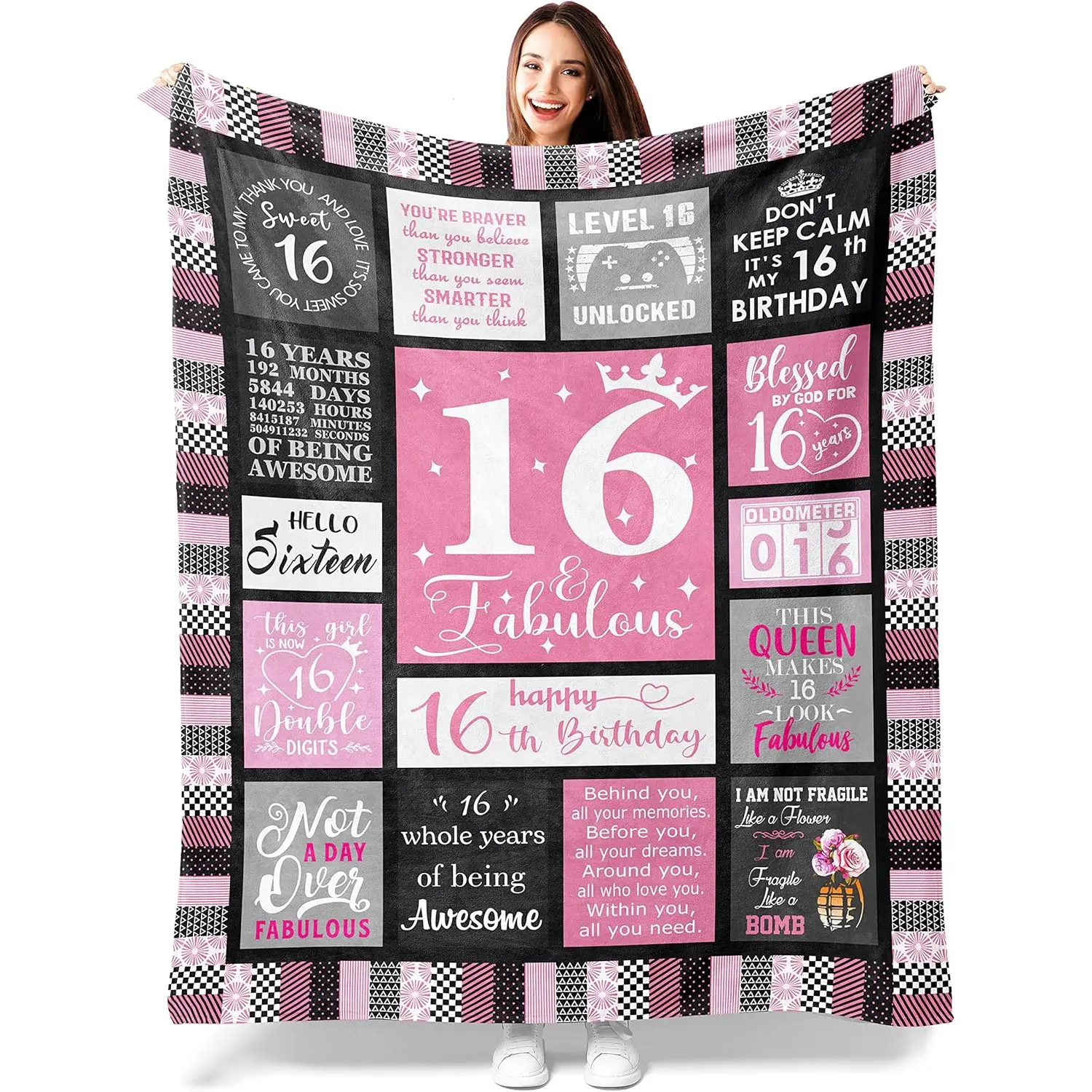 【Great gift idea】: When you get this throw blanket for your daughter, sister, niece, friend, it will be a perfect gift for 16th birthday, party, Christmas, New Year's Day, Thanksgiving. As a surprise gift for a sweet day, or as a thoughtful gift for living with you, that special someone by your side will let her know that you care about her.