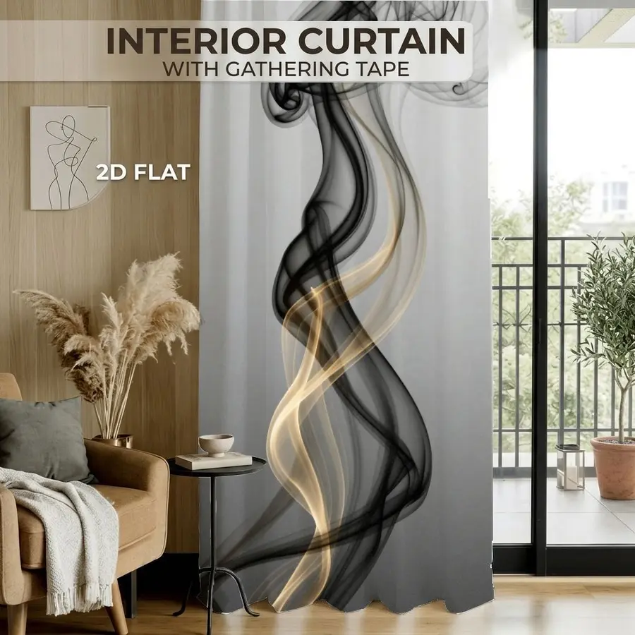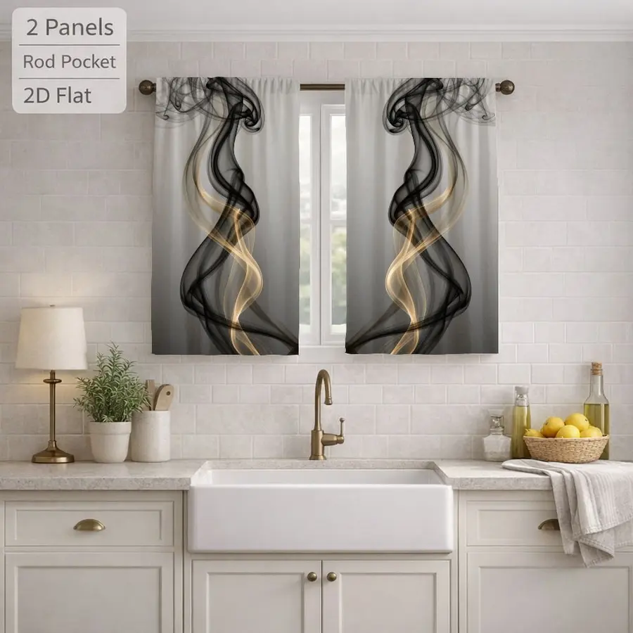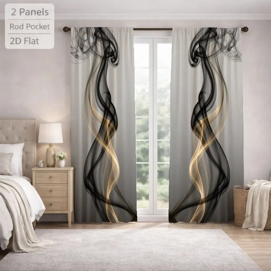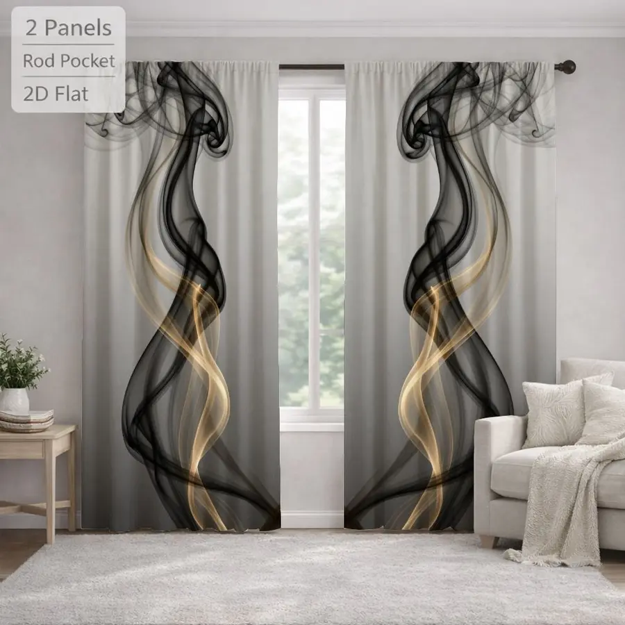 2Pcs Abstract Gold Black Smoke Pattern Sun Blocking Curtains Digital Printed Rod Pocket, Window Treatment For Bedroom Office Kitchen Living Room Study Home Decor