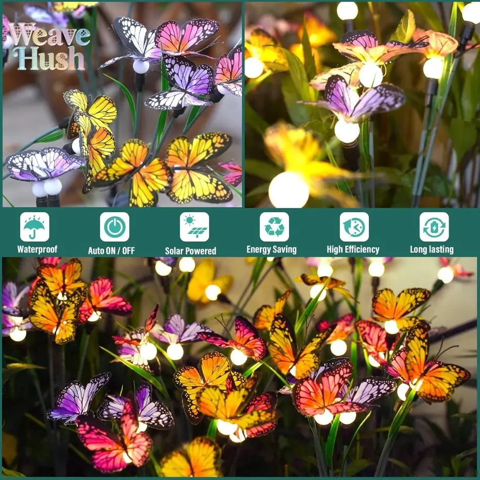Solar Butterfly & Flower LED Garden Stake Lights, Outdoor Waterproof Swaying Landscape Lights, Wind-Dancing Decorative Lights for Yard, Patio, Pathway & Lawn, Energy Saving Auto On/Off LED Stake Lamp for Outdoor Garden Decor