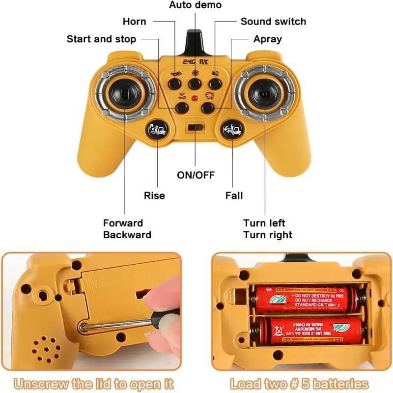 ·【2.4Ghz Control】Forklift toy auto pairing, 10-100 feet control range or greater. Will allow several remote control bulldozer toys to run at the same time with no interference. Let kids experience the fun of competition and inspire their engineering dreams.
