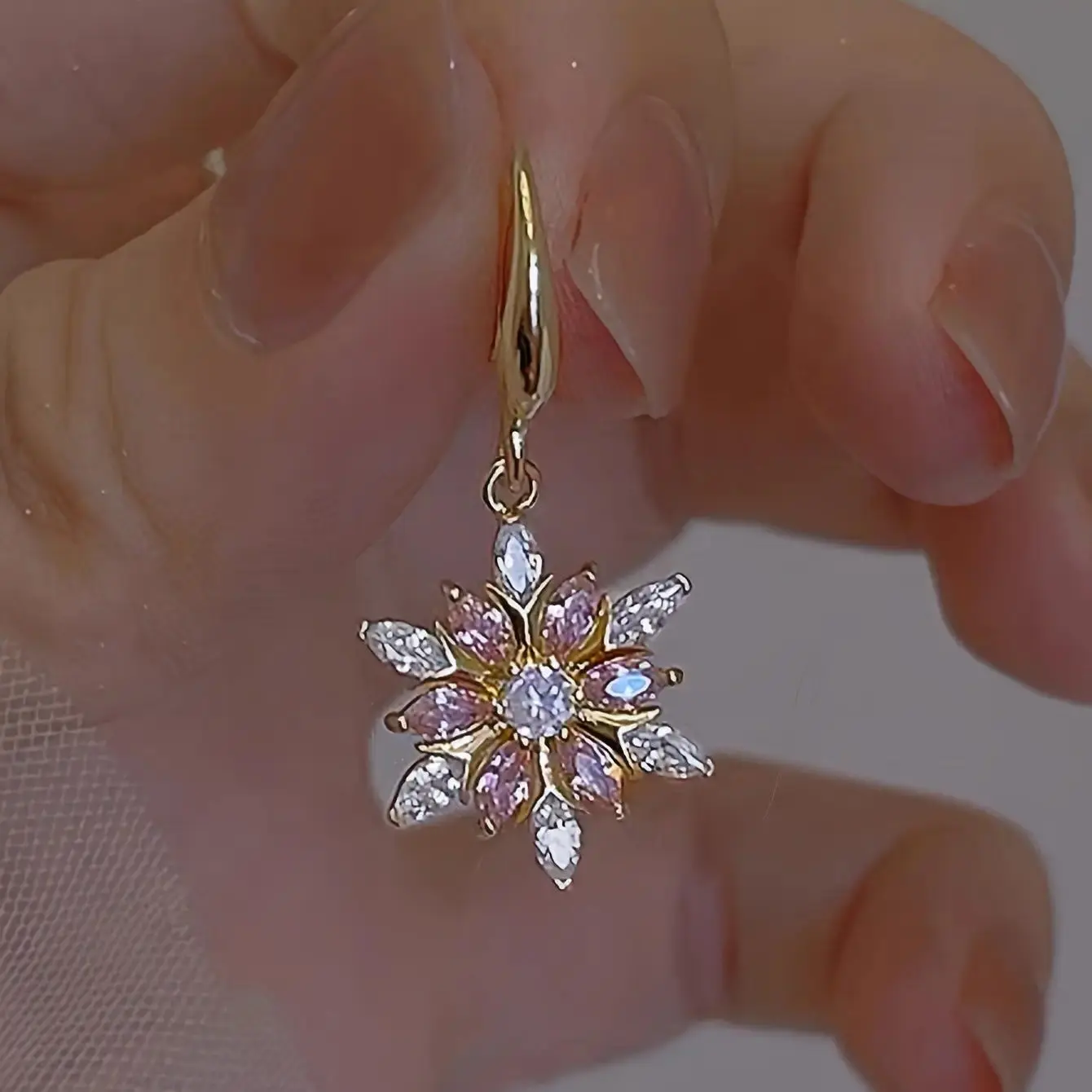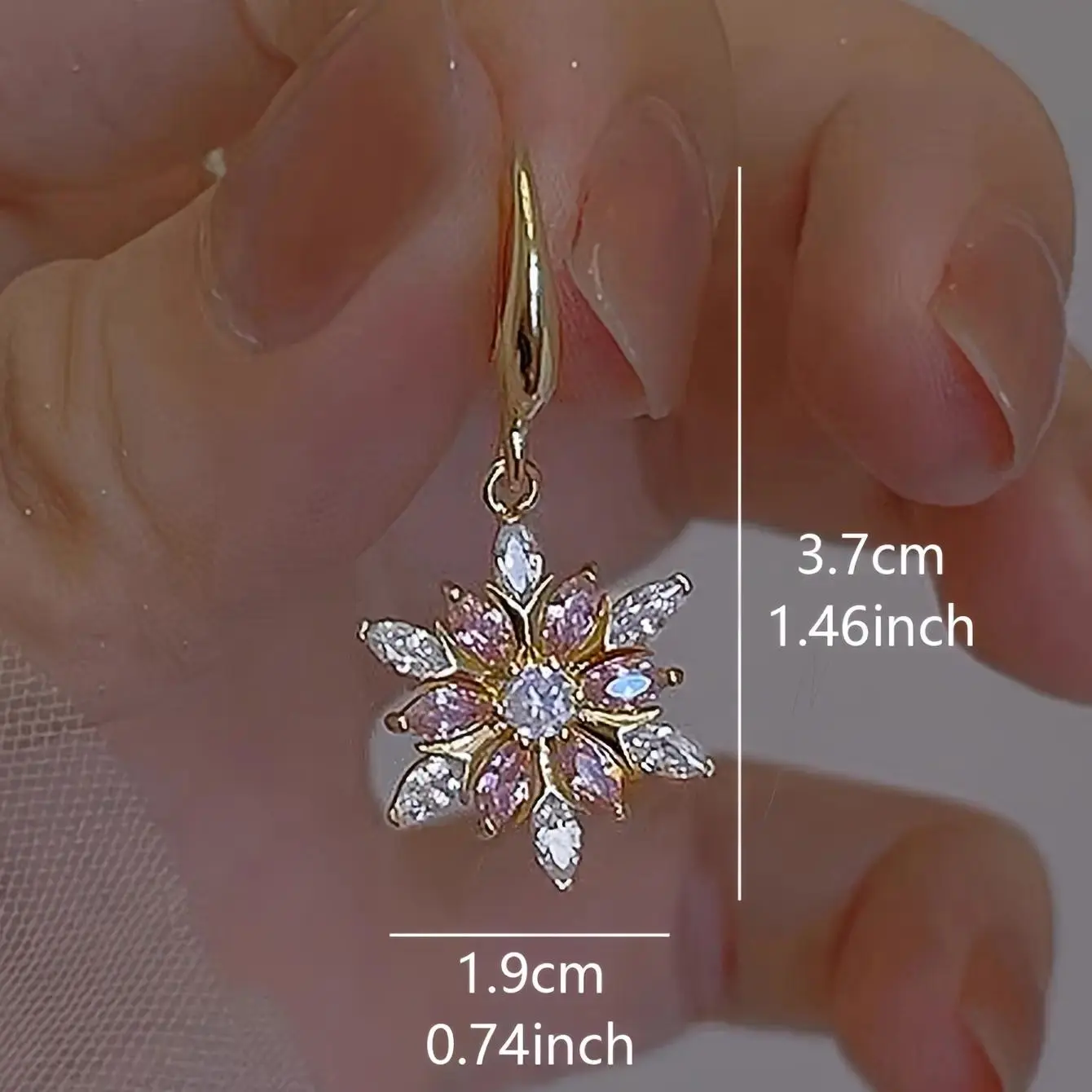 Elegant Snowflake Dangle Earrings With Pink Rhinestones Zinc Alloy Copper Sparkling Jewelry For Women Daily Vacation Wear