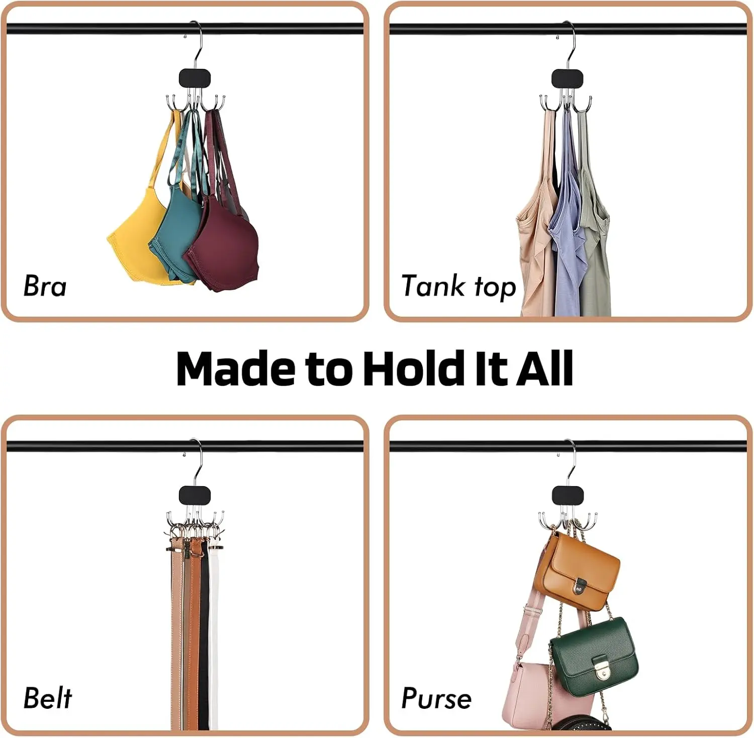 ·360° Rotating Hook – Easily rotate hangers for convenient access without removing them from the closet rod.