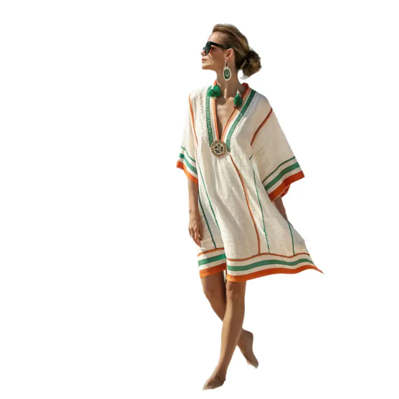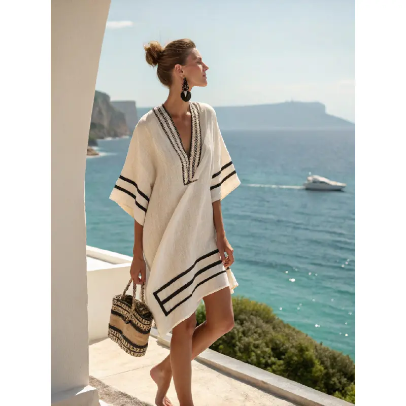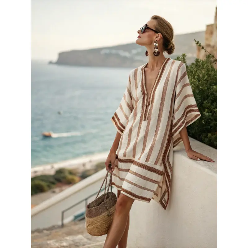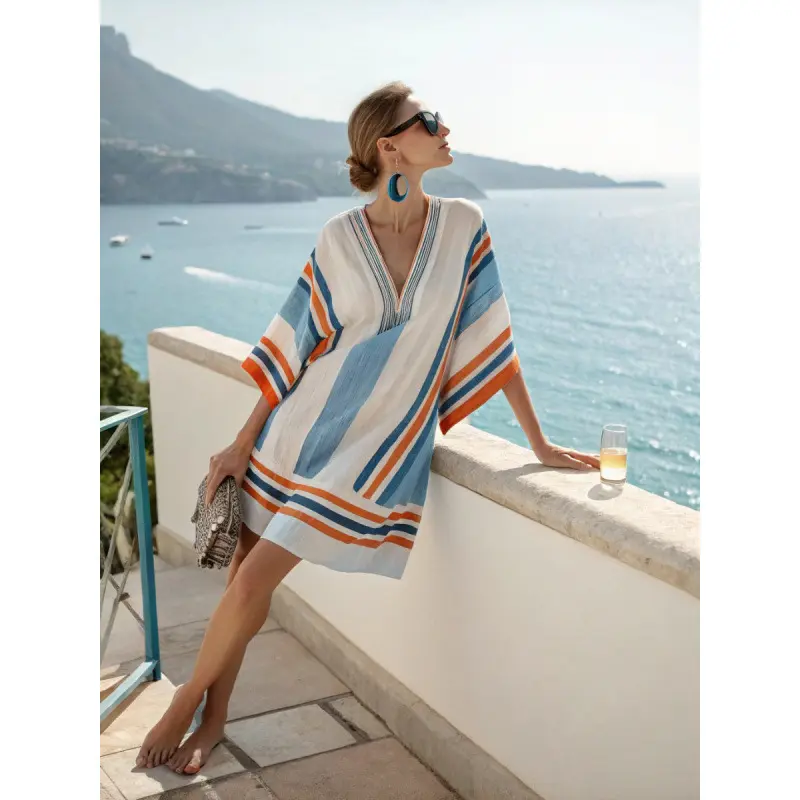 2026 New Hot-Selling Beach Vacation Style V-Neck Bohemian Printed Loose Beach Dress Vacation Style