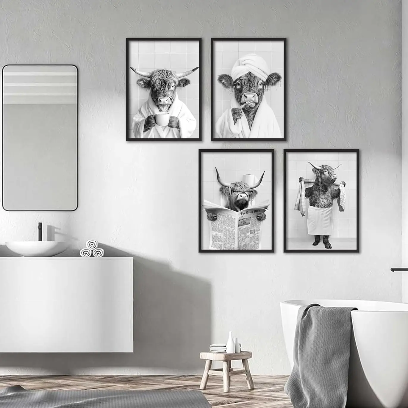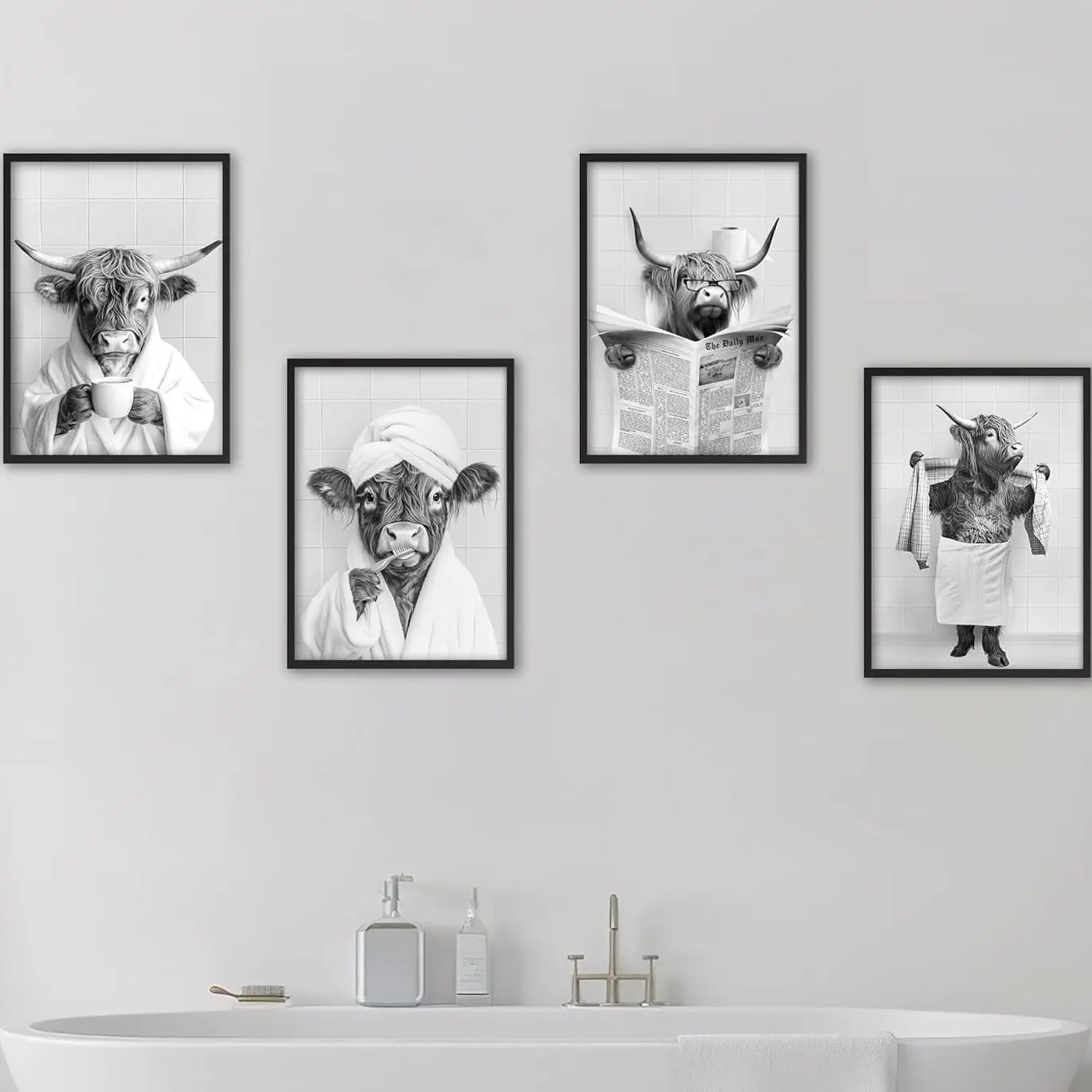 4pcs/set Frameless Funny Bathroom Humorous Animal Painting Calligraphy HD Canvas Poster living room bedroom bar aesthetic decoration