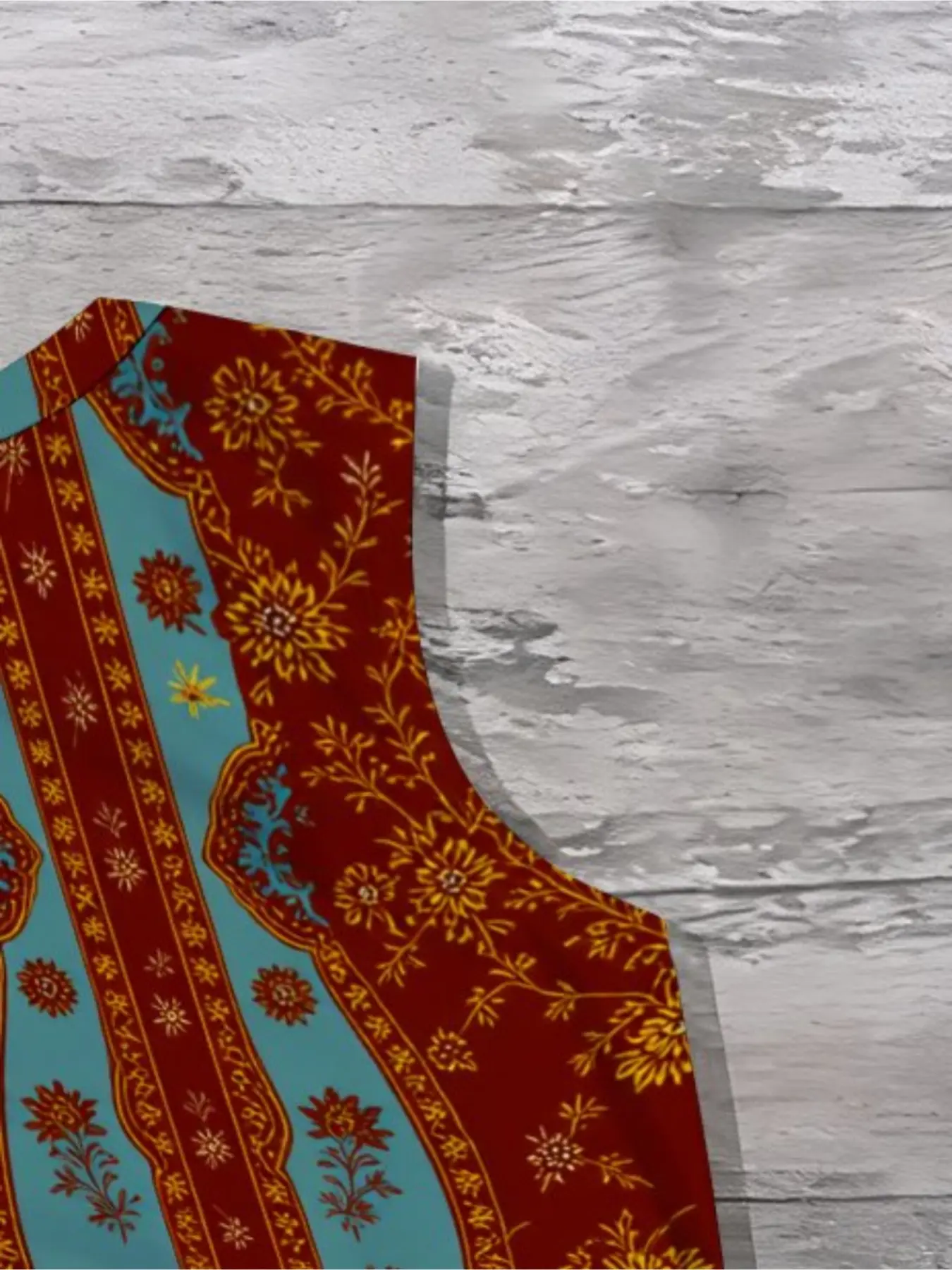 Men's Ethnic Print Sleeveless Summer Casual Set