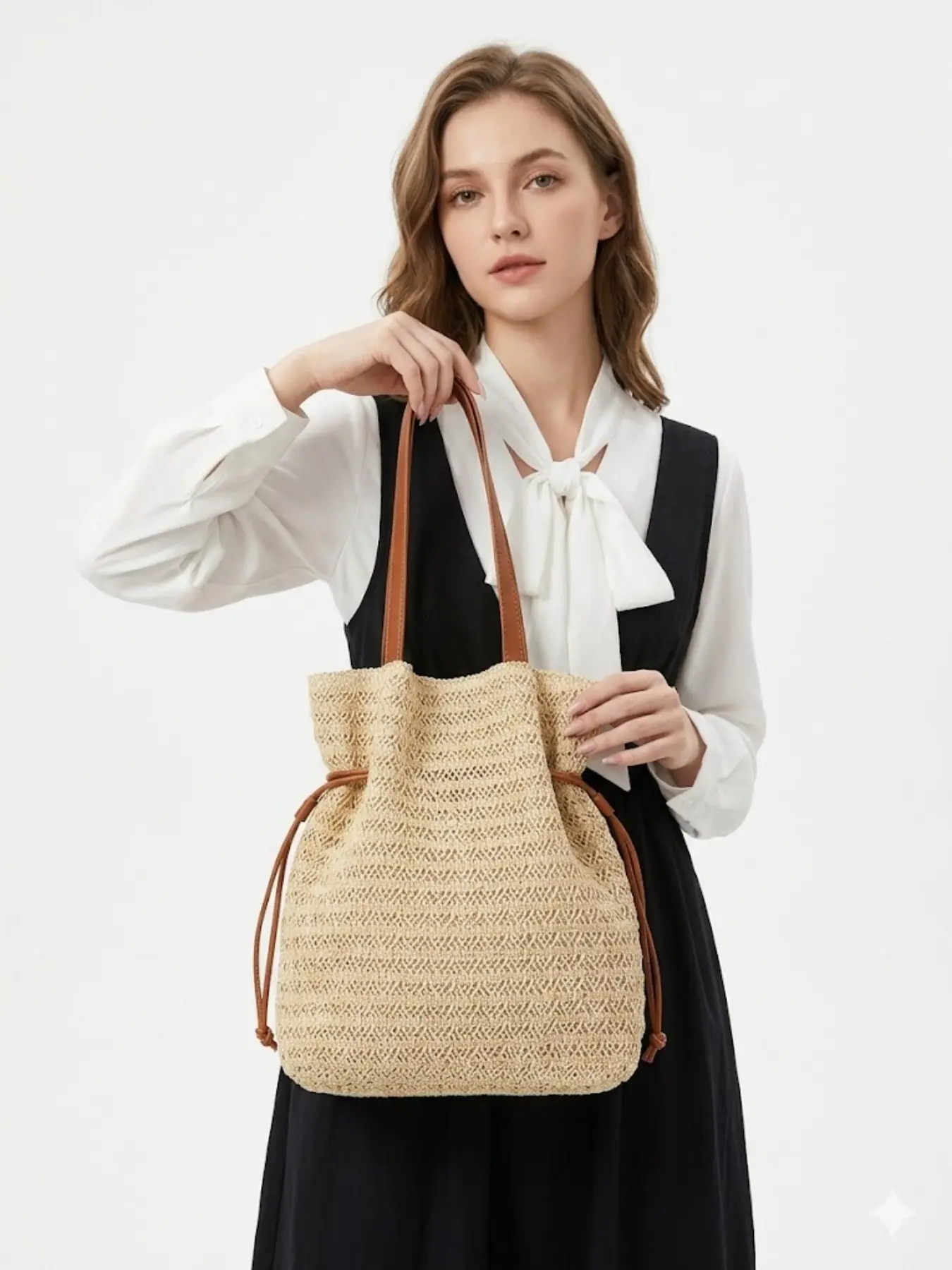This women’s straw bucket bag is the perfect mix of easy style and everyday practicality. Designed with a beautifully woven texture, a relaxed drawstring shape, and a roomy interior, it brings that effortless boho-chic look while still being practical enough for real life. Whether you’re heading to the beach, planning a sunny vacation, going out for brunch, or just trying to make your daily outfit look a little more put together, this woven shoulder tote is ready to come along.