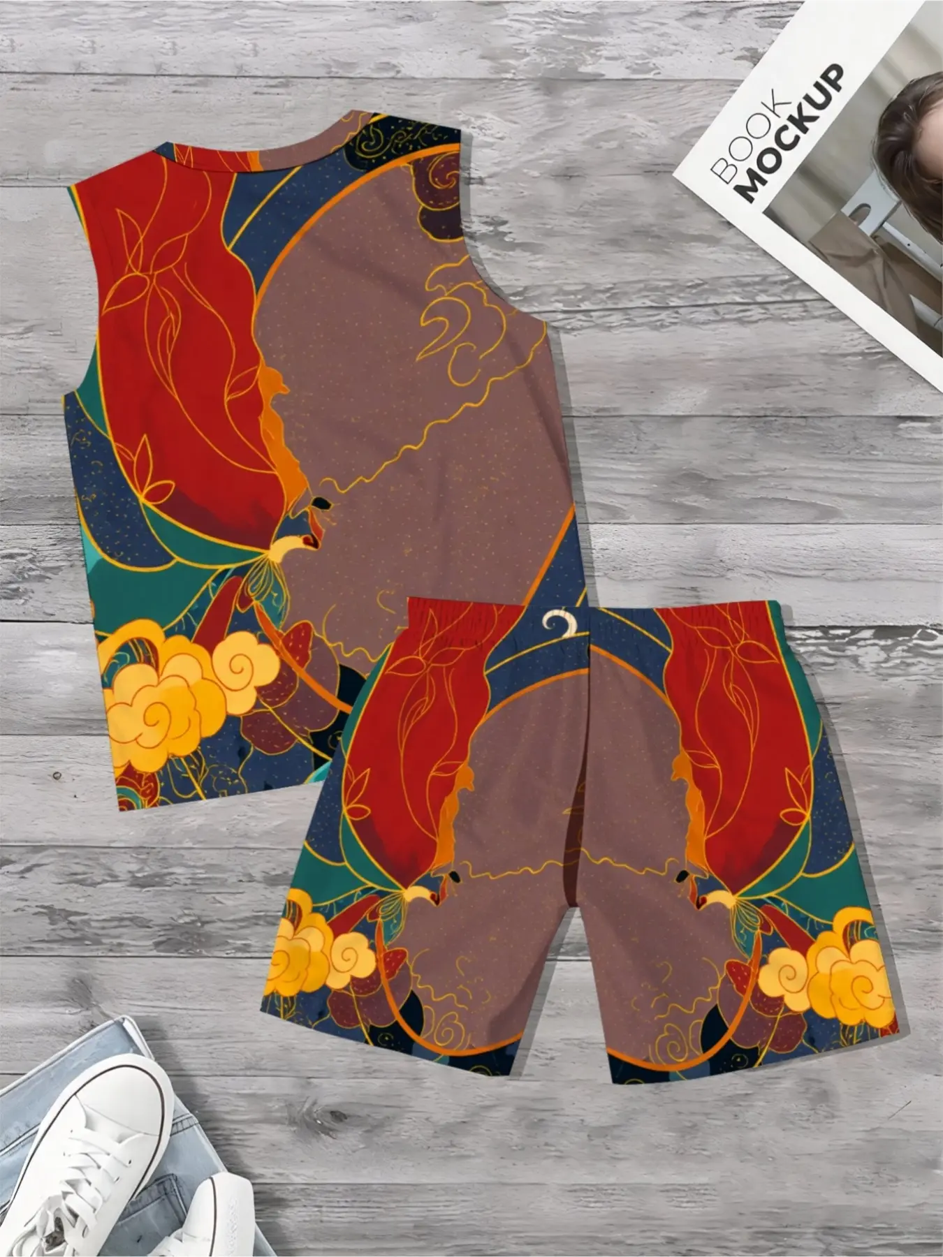 Men's Sleeveless Set Ethnic Phoenix Graphic Print Summer Casual Set