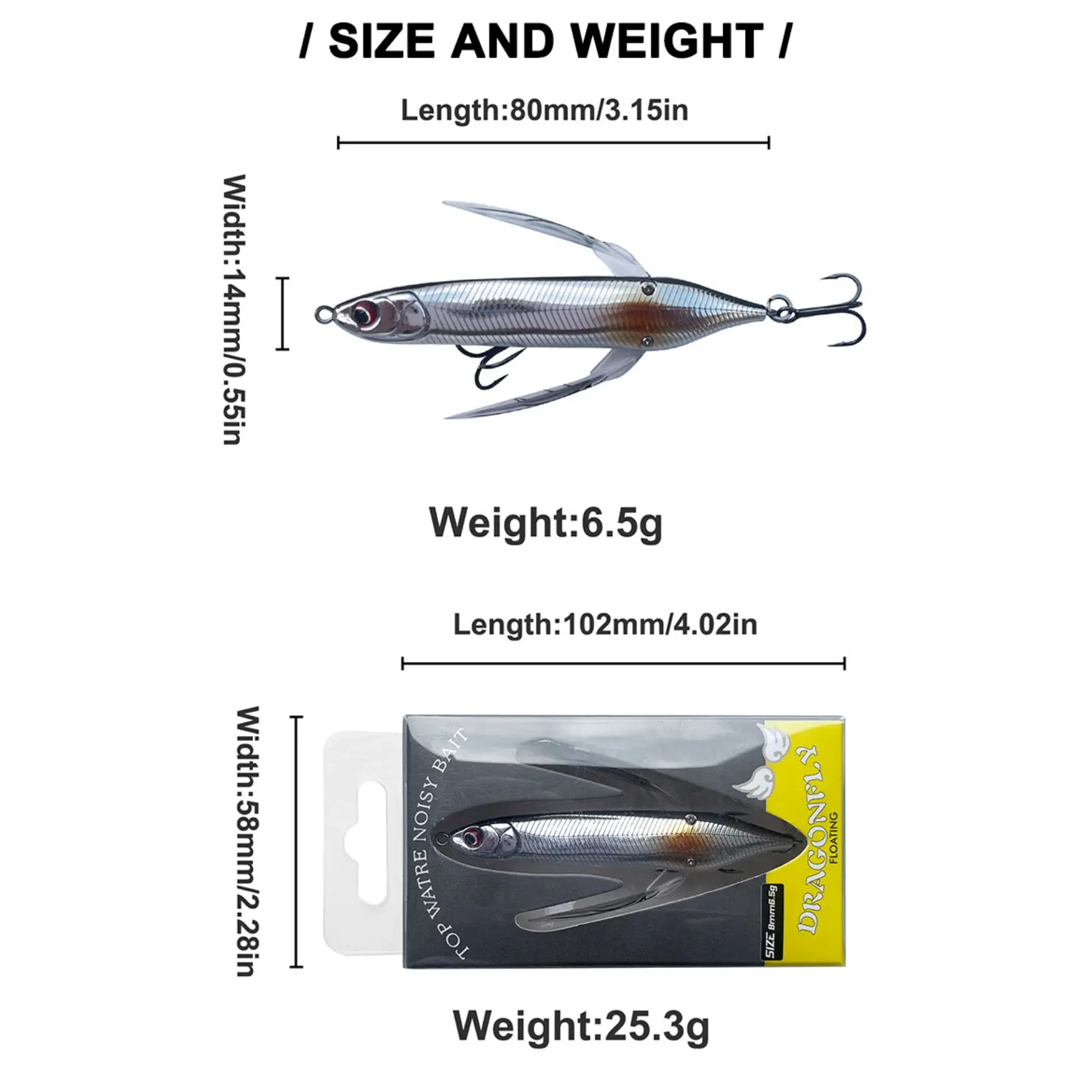 Topwater Dragonfly Fishing Lure Floating Whopper Plopper Style Bait Realistic Insect Artificial Lure Sharp Hooks for Freshwater Bass Snakehead Pike Perch Outdoor Angling Fishing Tackle