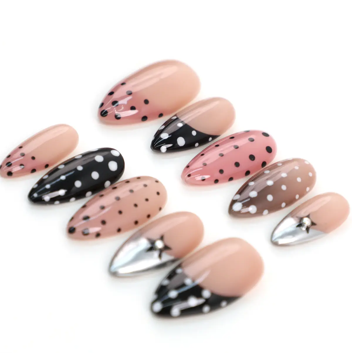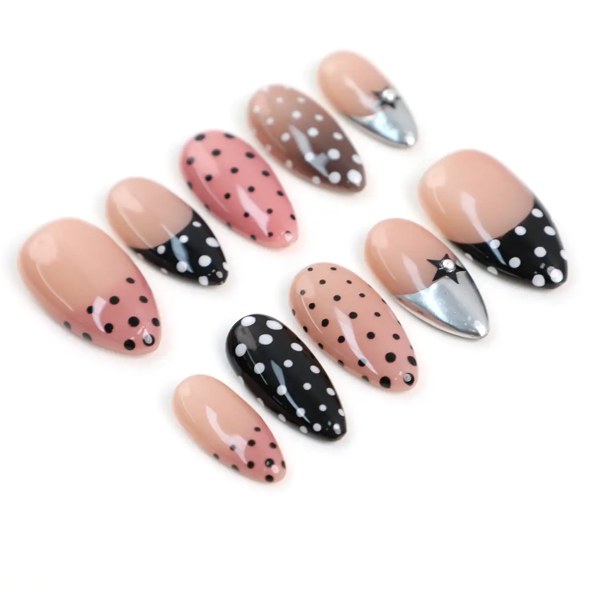 4. PG66 MuseMood 100% Handcrafted Warm Polka Press-On Nails | Reusable, Long-Lasting, Salon-Quality