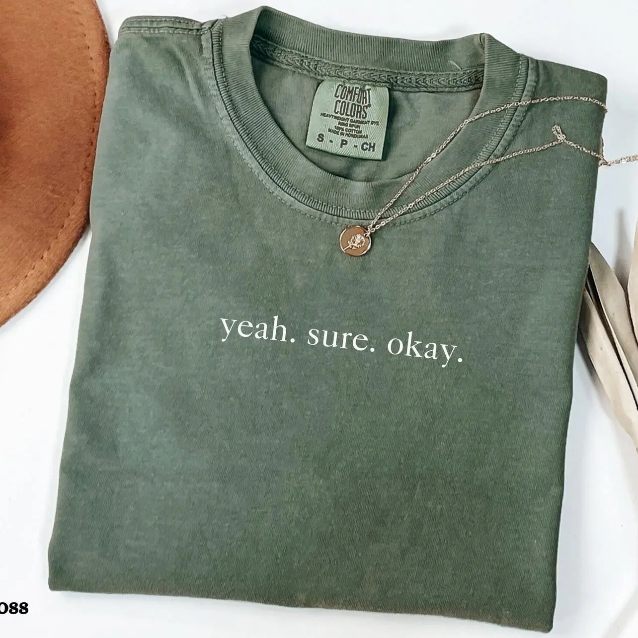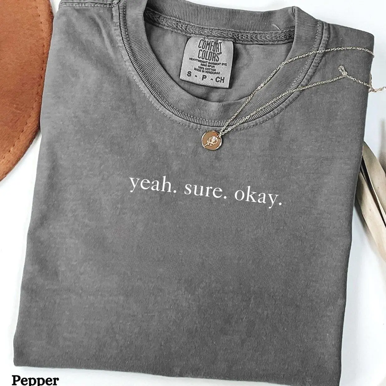 Comfort Colors Yeah Sure Okay Shirt, Mental Health Shirt, Funny Shirt, Trending Music Shirt, Shirt for Women, Sarcastic Shirt, Gift for Her - Trendy Fashion USA