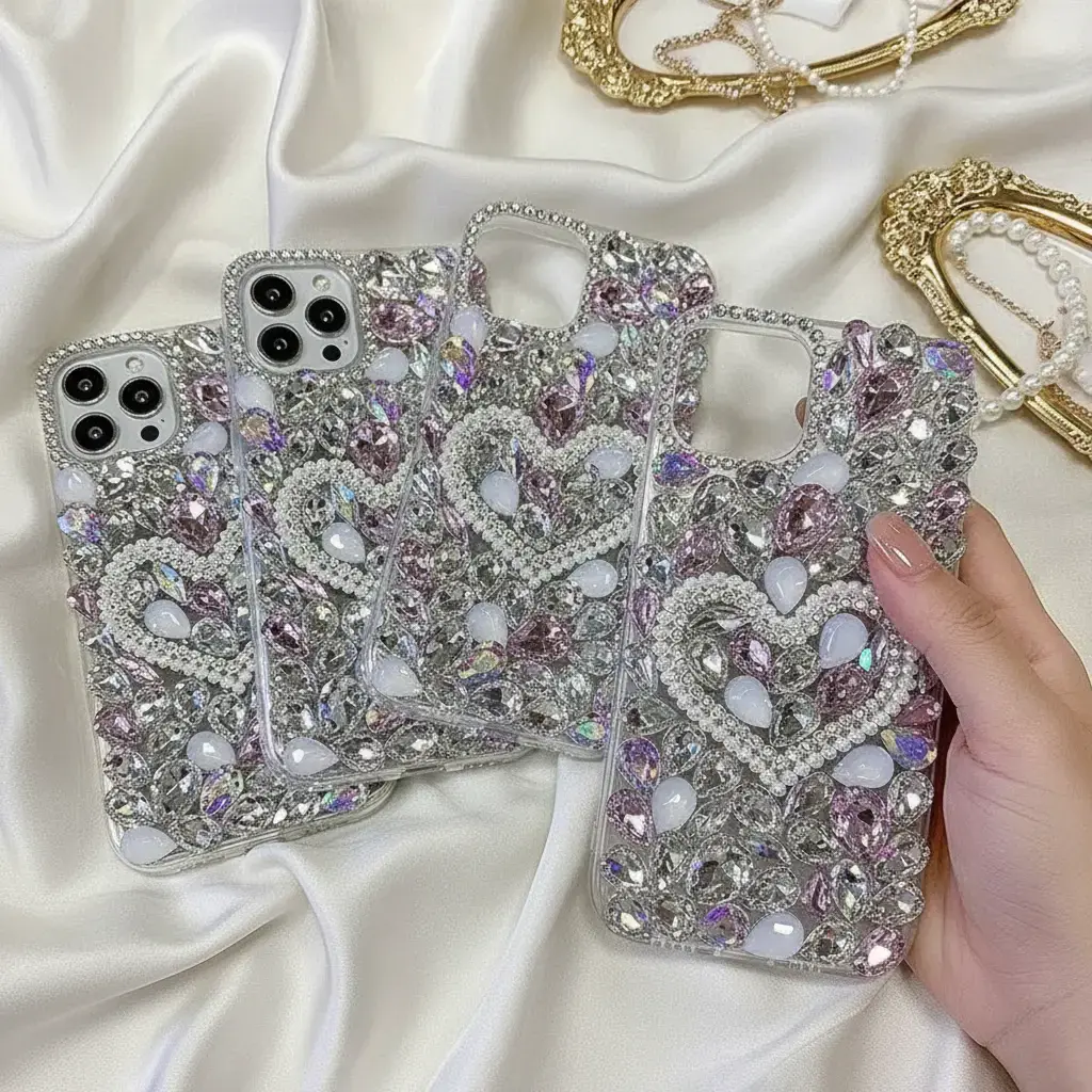 ·Luxury Handmade Rhinestone Design: Features A Stunning Full-Coverage Bling Rhinestone& Pearl Heart Pattern, Handcrafted With Premium Sparkling Crystals For A Glamorous, Eye-Catching Look.
