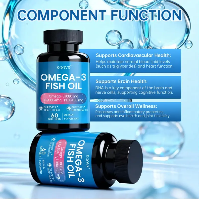KOOVS Omega-3 Fish Oil Softgels | Dietary Supplement for Heart & Brain Support Vitamin and mineral supplement that supports brain health