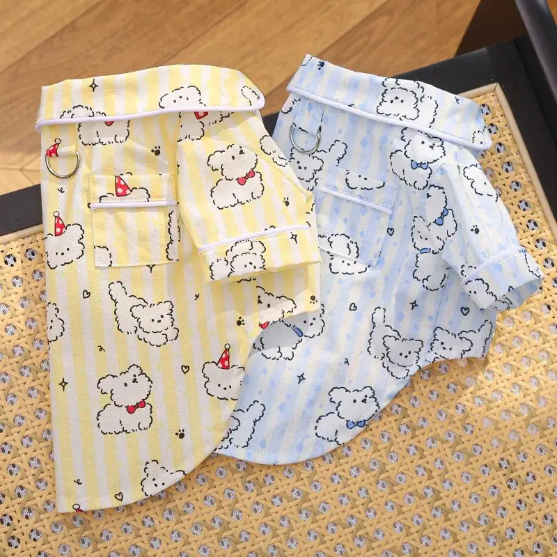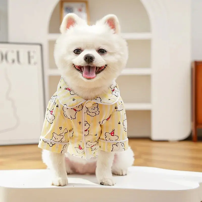 Dog Shirt Spring and Autumn Pet Couple Clothes Cartoon Puppy Pattern Teddy Vest Yorkshire Soft Home Cothes Sleepwear