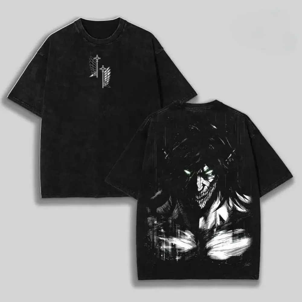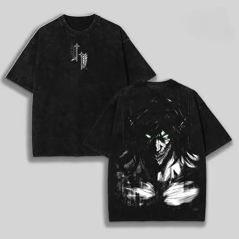 valentine shirts Retro Heavy Eren Yeager x Attack On Titan Ver 2 Anime Double Printed Men's Vintage Tee Washed Unisex Oversize Anime Manga Washed Heavyweight Cotton T-shirt, Anime Gift For Him