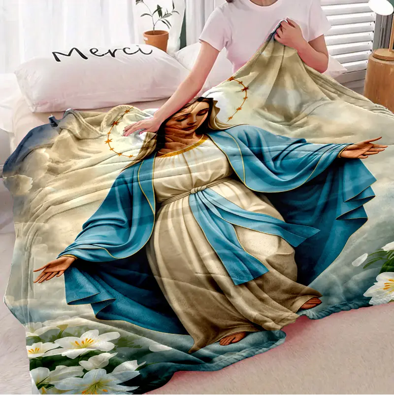 Virgin Mary Blanket Wrap Yourself in Divine Comfort Soft Funny Throw Blanket Cozy Lightweight Plush Portable Cover Blanket For Sofa,Warm Gift For Birthday,Christmas,Multiple Blanket Suitable for all four seasons cozy flannel blanket