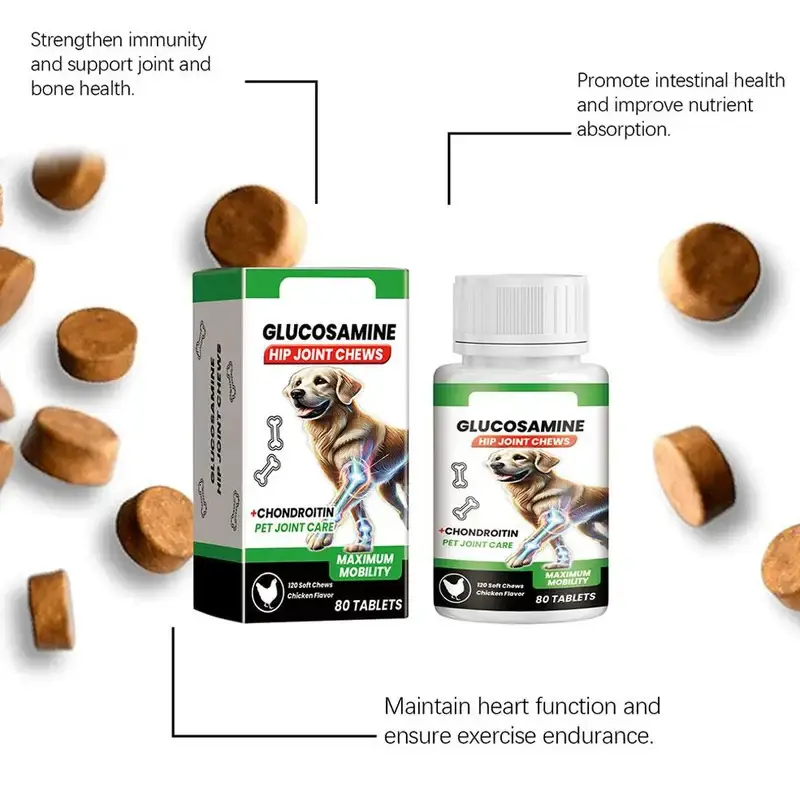 80 Tablets Nutritional Supplement Chondroitin Soft Chew Hip Joint Dogs Enhance Vitality Chicken Flavor Pet Joint Care Tablets