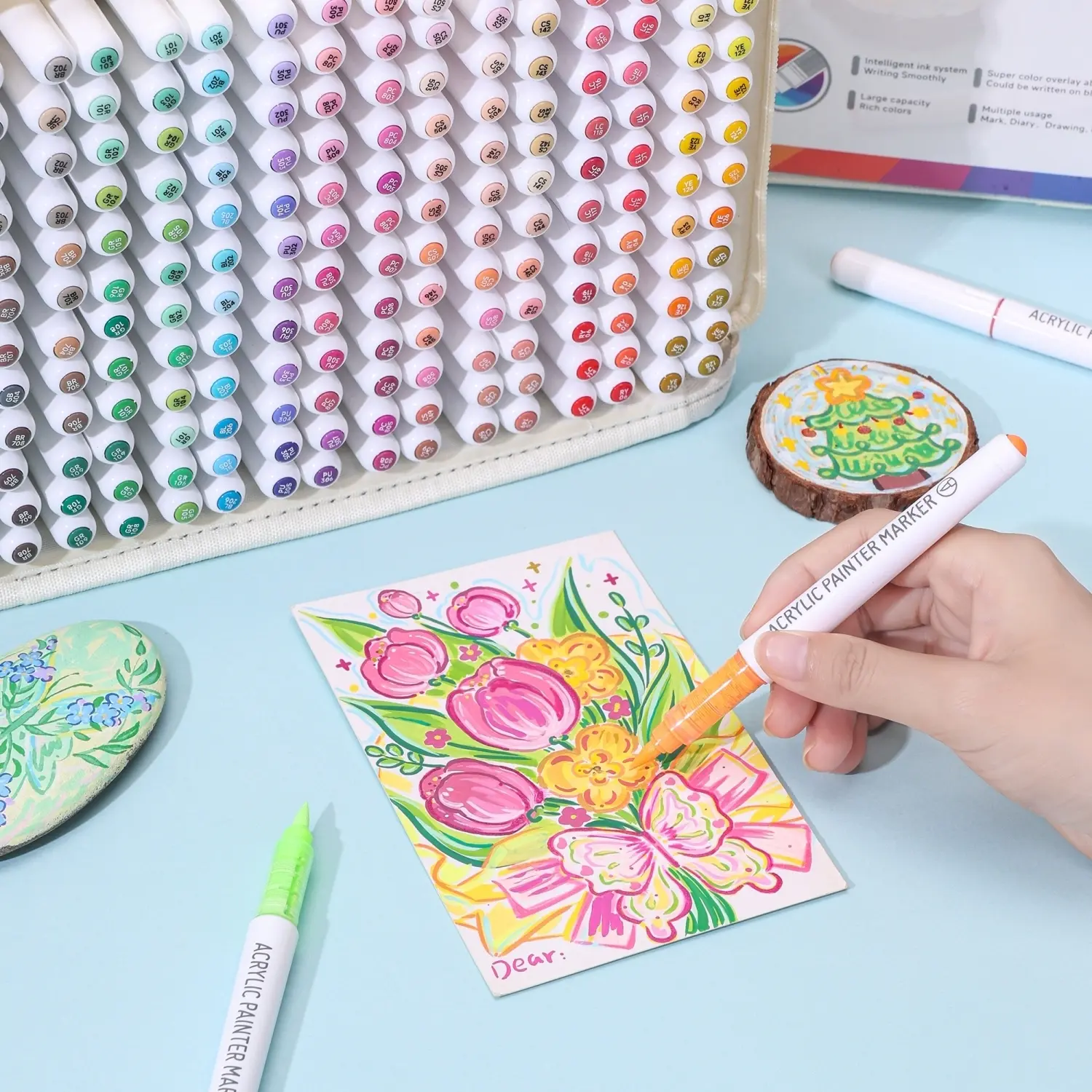 【Storage Convenience】: Comes with a layered storage box and base, keeping markers organized and easily accessible.