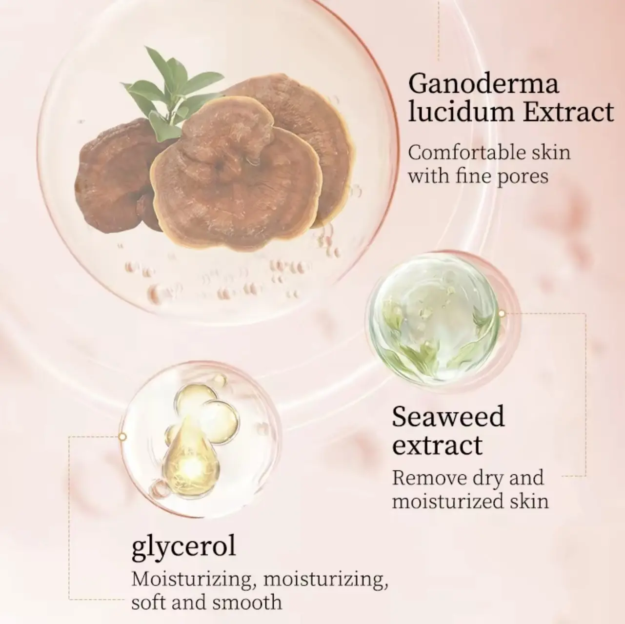 ·Refines Pore Appearance: Ganoderma lucidum extract helps soothe the skin and refine the look of pores, leaving your skin feeling comfortable and with a smoother texture.