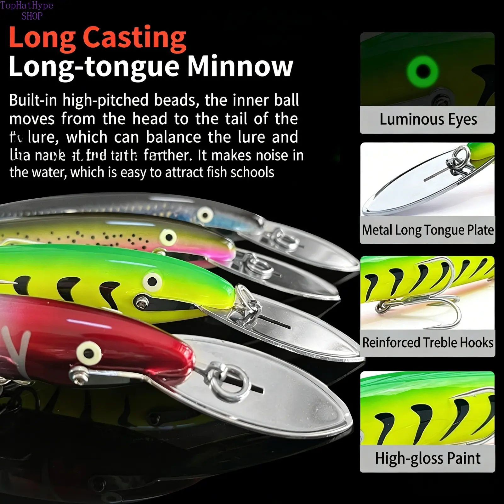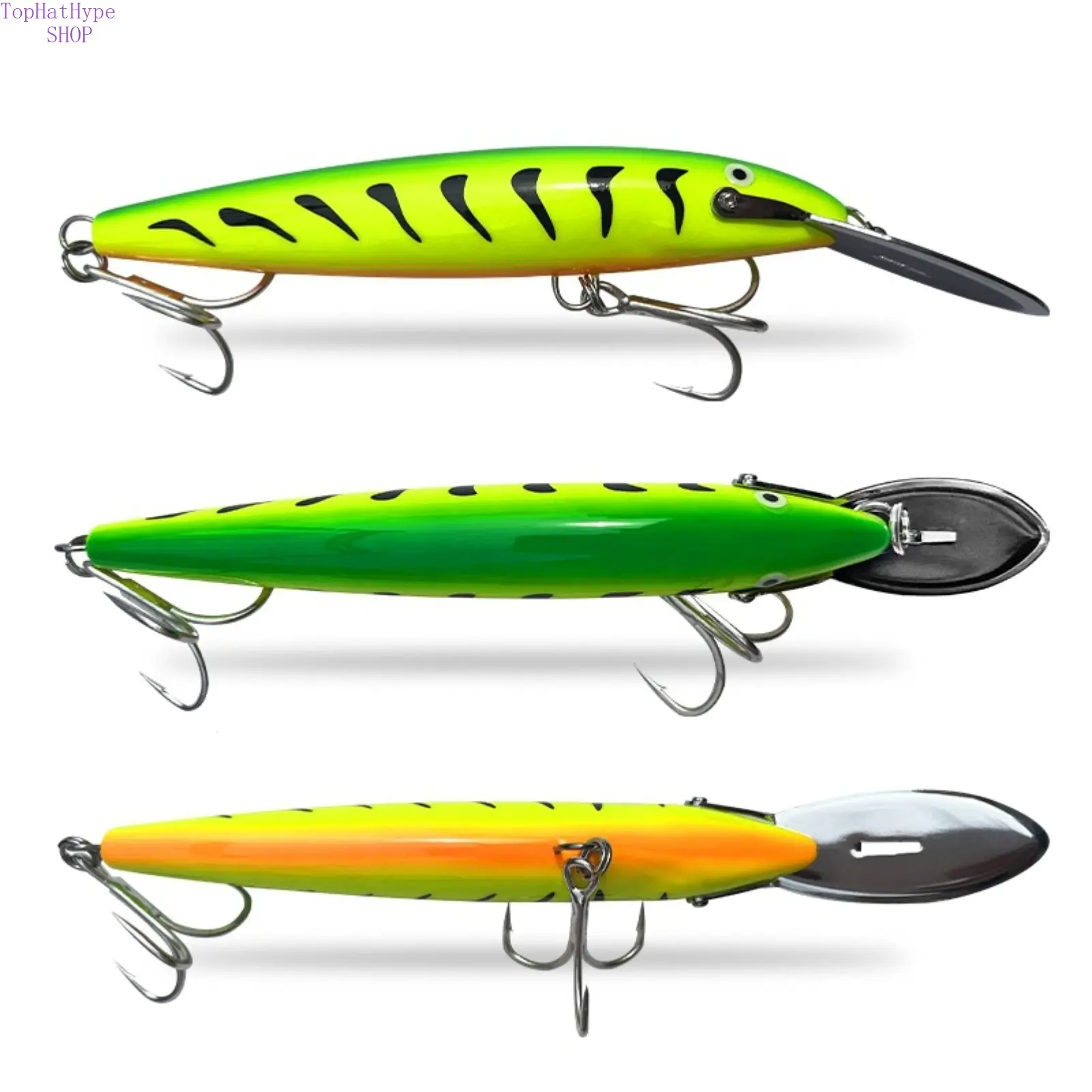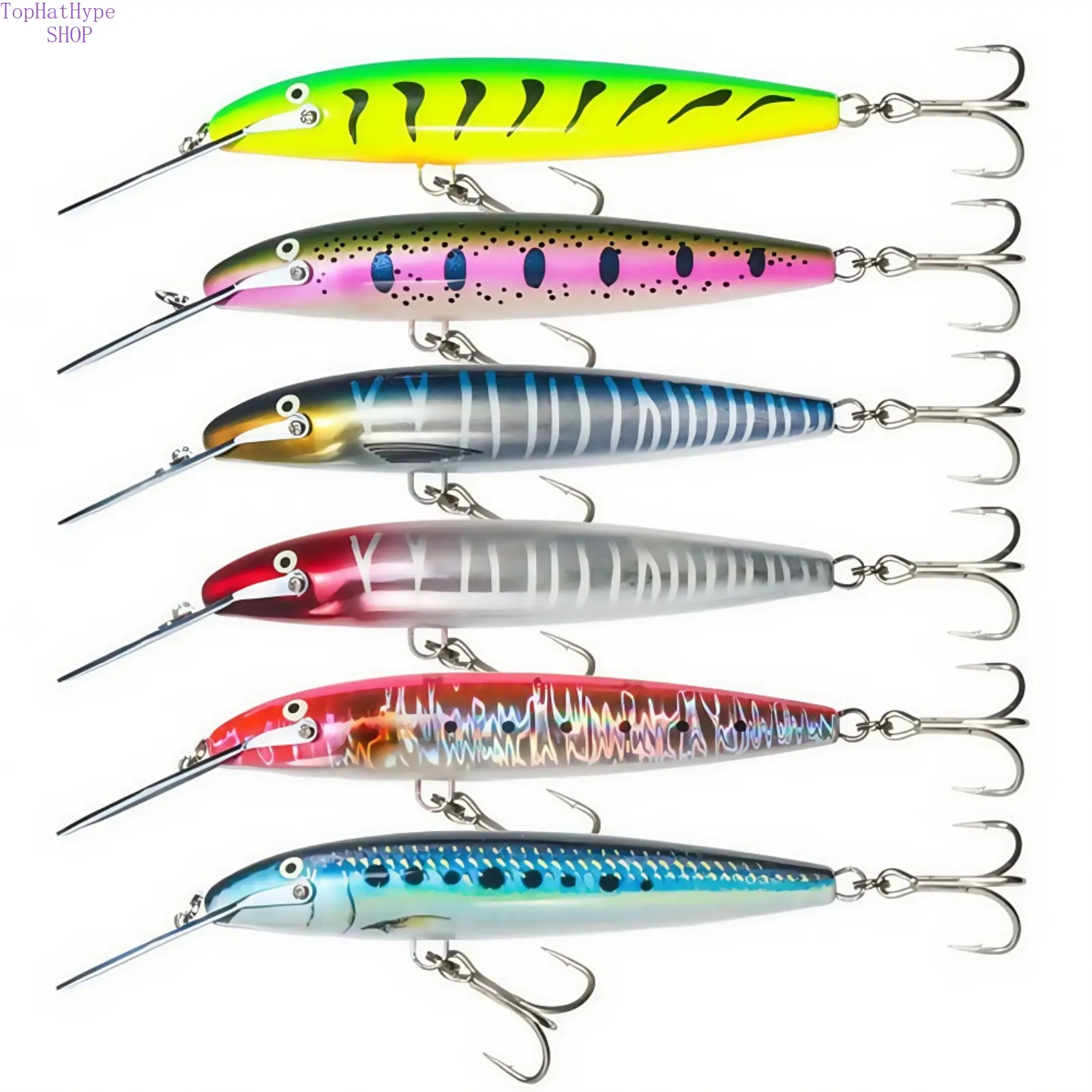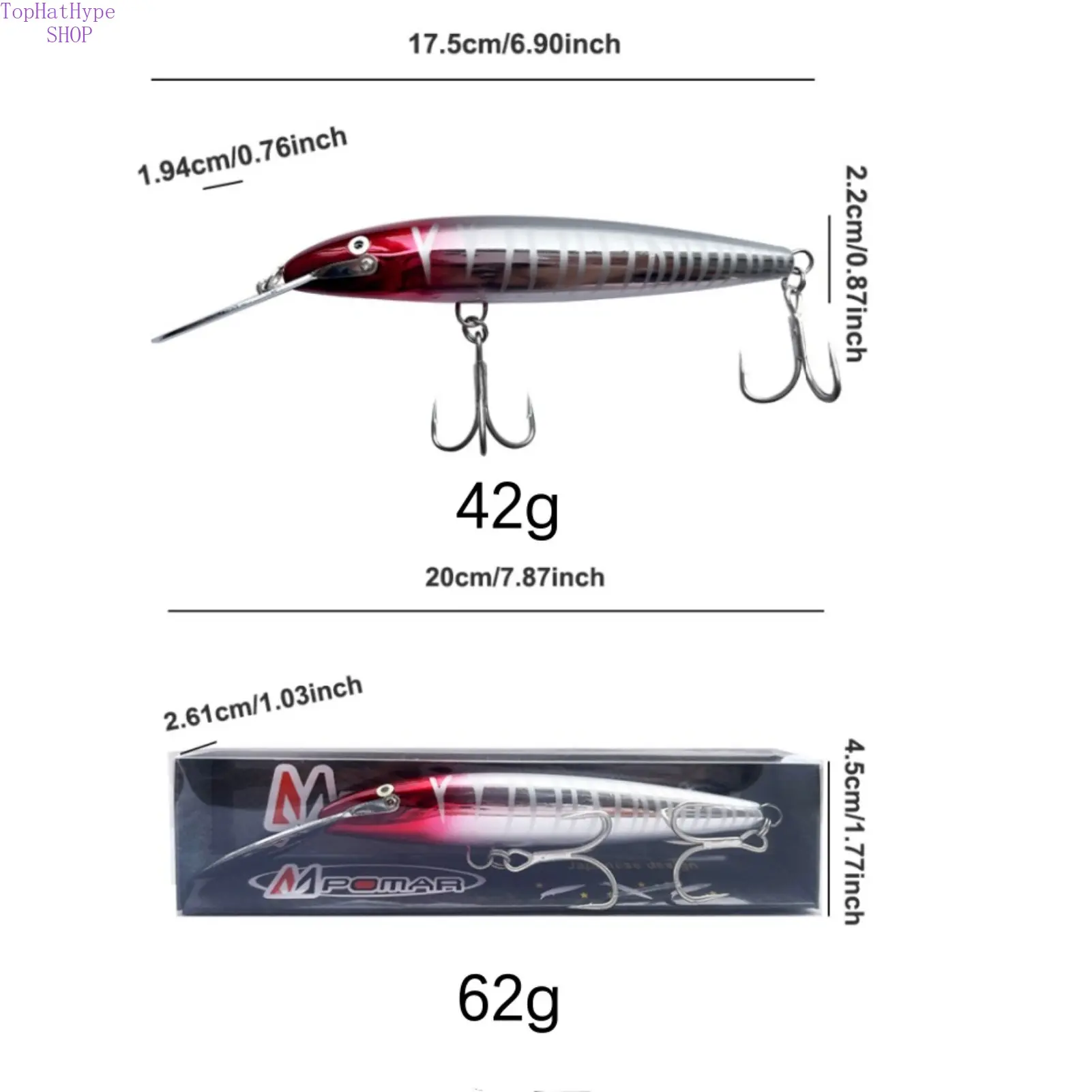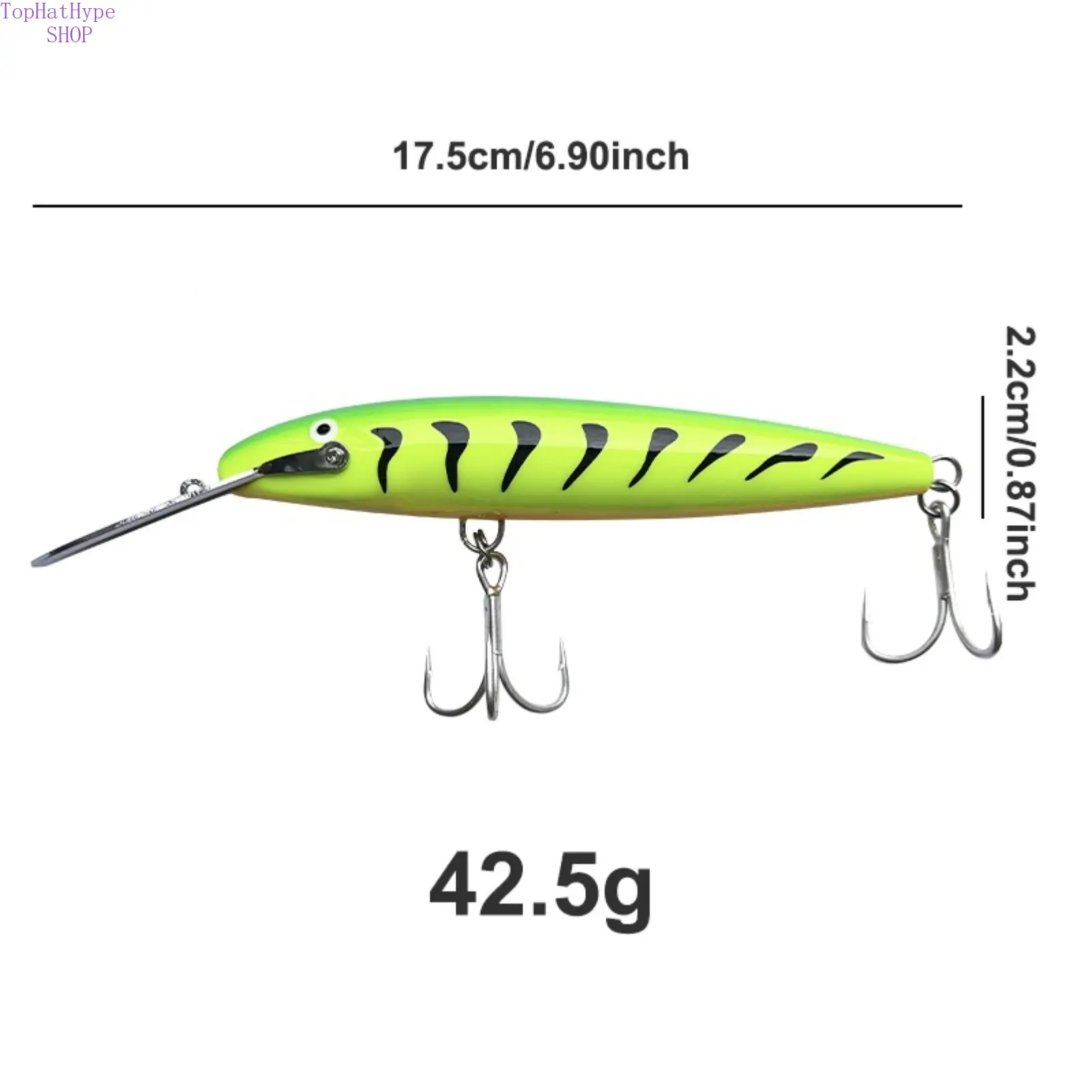 42.5g Deep Diving Trolling Minnow Lure Long Metal Lip Hard Bait Long Casting Saltwater Offshore Fishing Lure Sharp Treble Hooks Realistic Action for Tuna Kingfish Mackerel Big Game Fishing Tackle