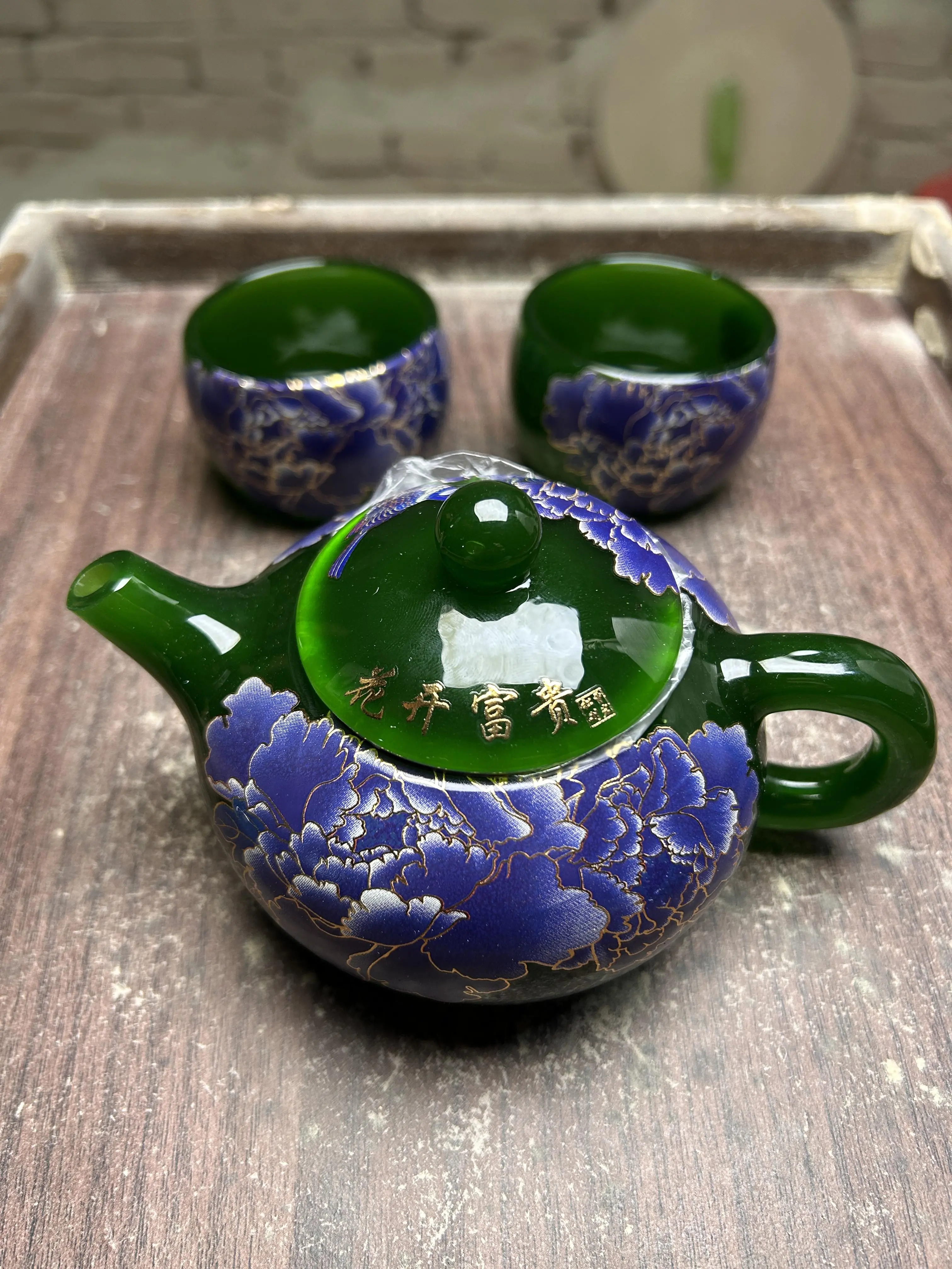 This set is ideal for those who appreciate both style and functionality. Enjoy your tea in a set that combines elegance with practicality. The green peony design and golden accents make it a cherished item.