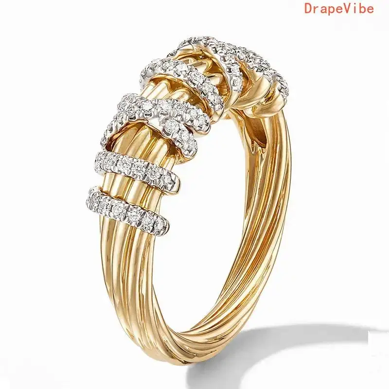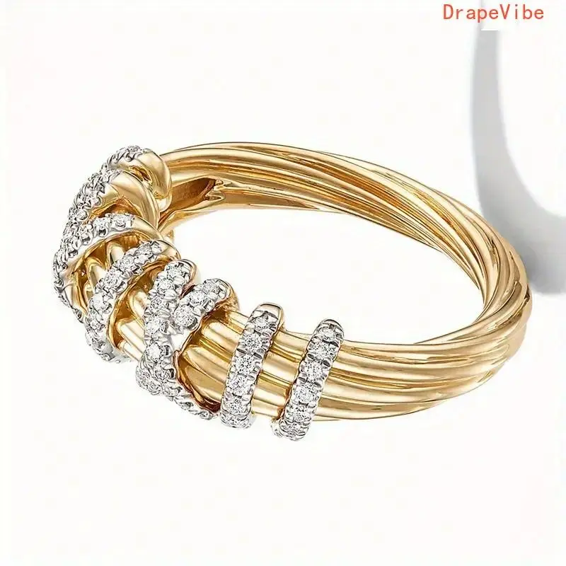 Bohemian Interlocking Band Ring Golden Twisted Rope Design Sparkling Rhinestone Accents Durable Statement Jewelry For Women Daily And Special Occasions