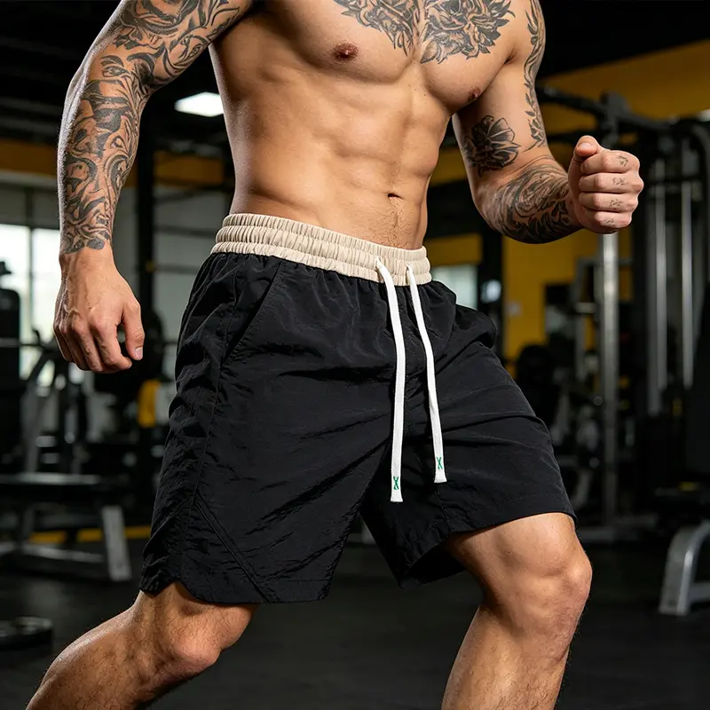 These athletic shorts are designed for both gym and casual use. The loose fit ensures comfort and ease of movement. The contrast waist with a drawstring adds a stylish touch. Ideal for men looking for versatile shorts that can transition from workout to everyday wear.