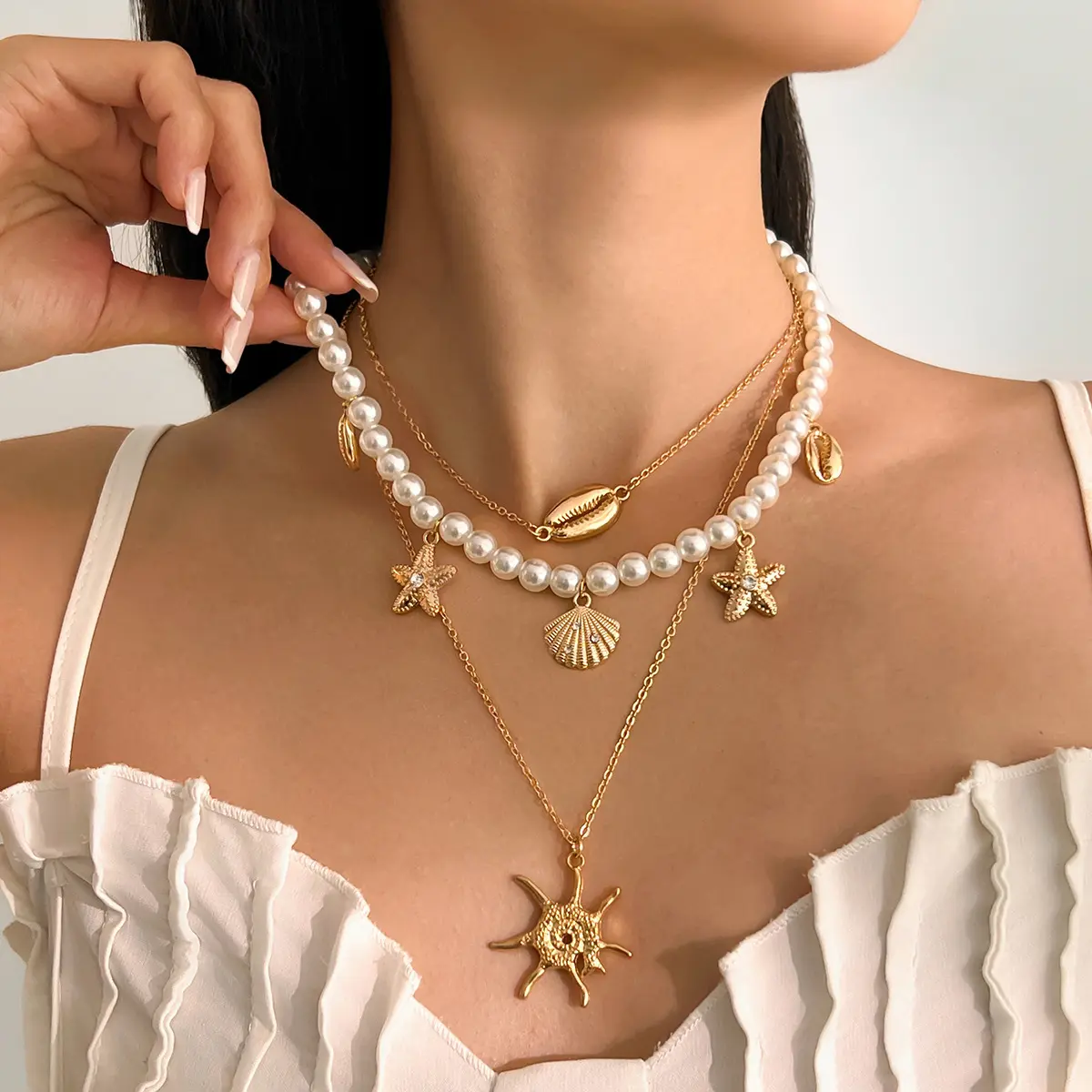 This layered pearl necklace brings a dreamy beach-vacation feeling to your outfit. It makes your look feel more feminine, stylish, and complete, while adding a soft ocean-inspired charm that stands out beautifully in daily wear, holidays, and photos.