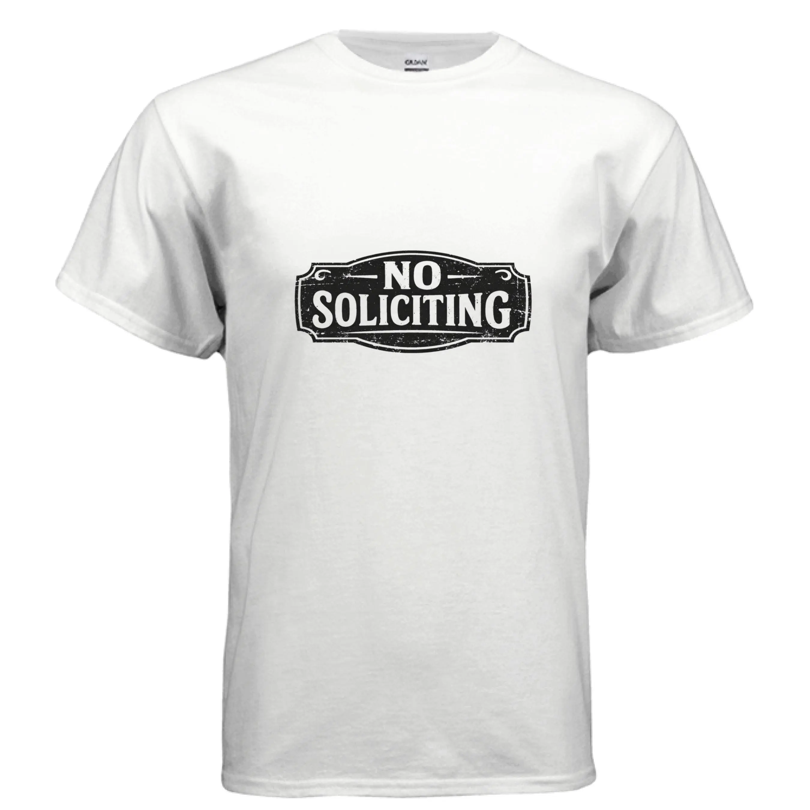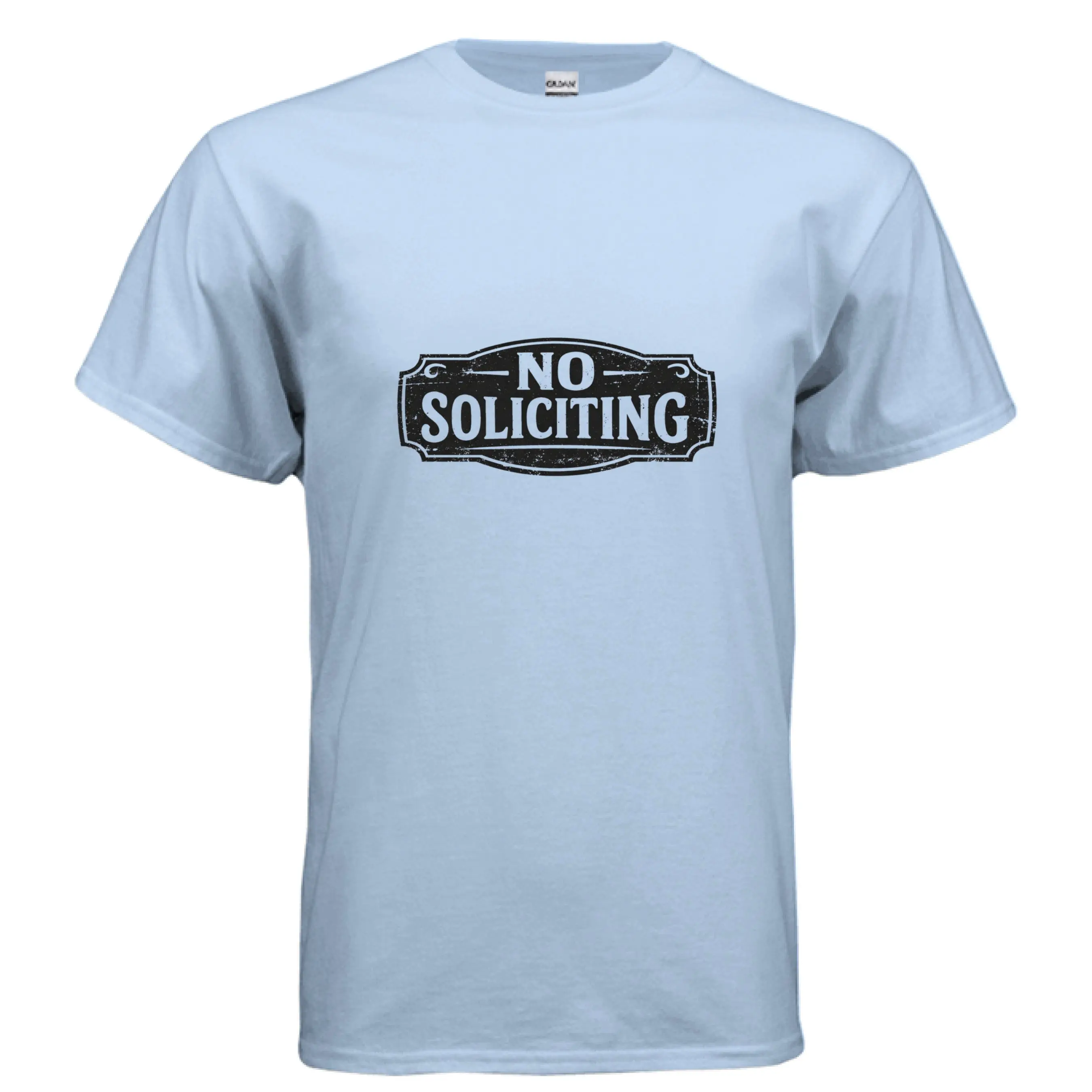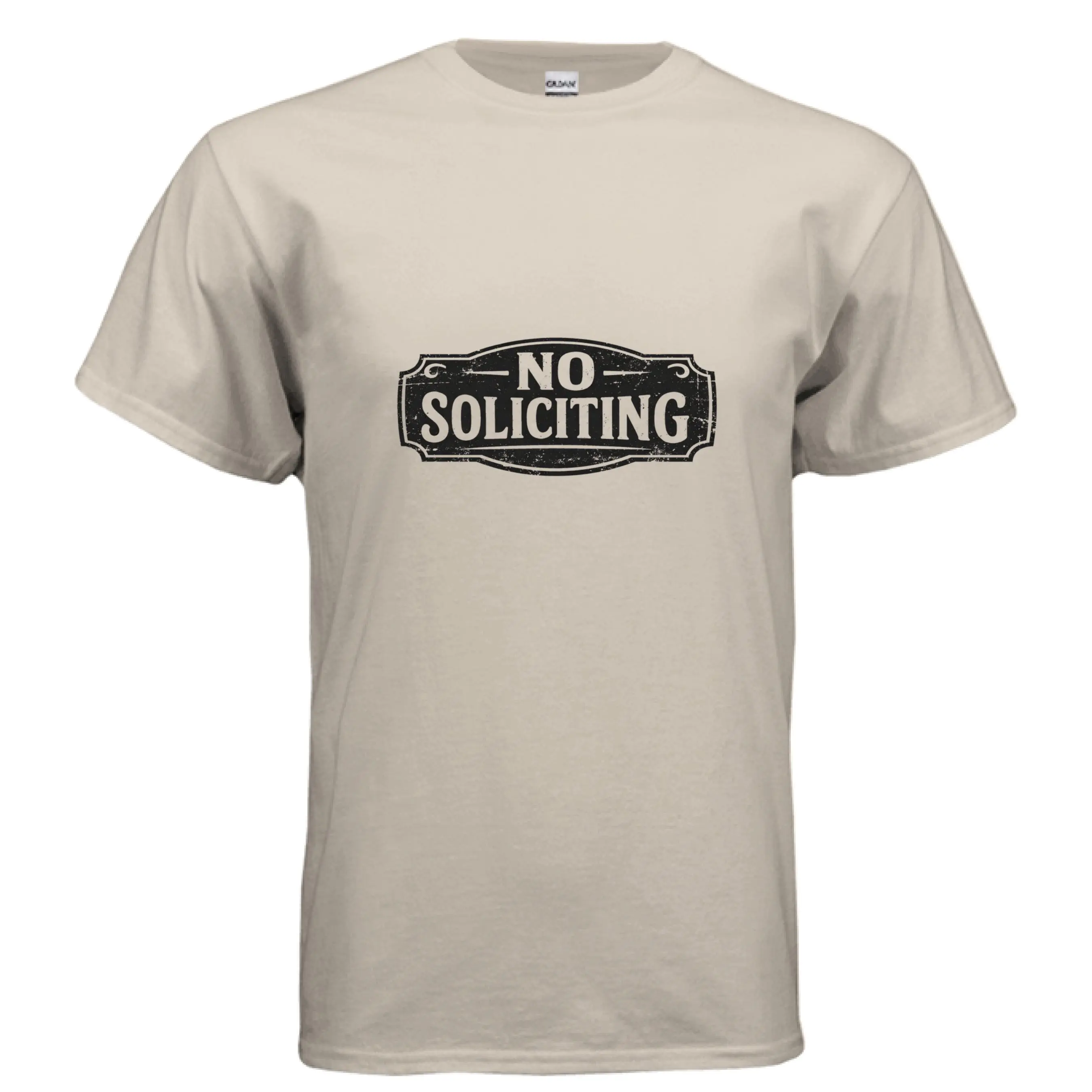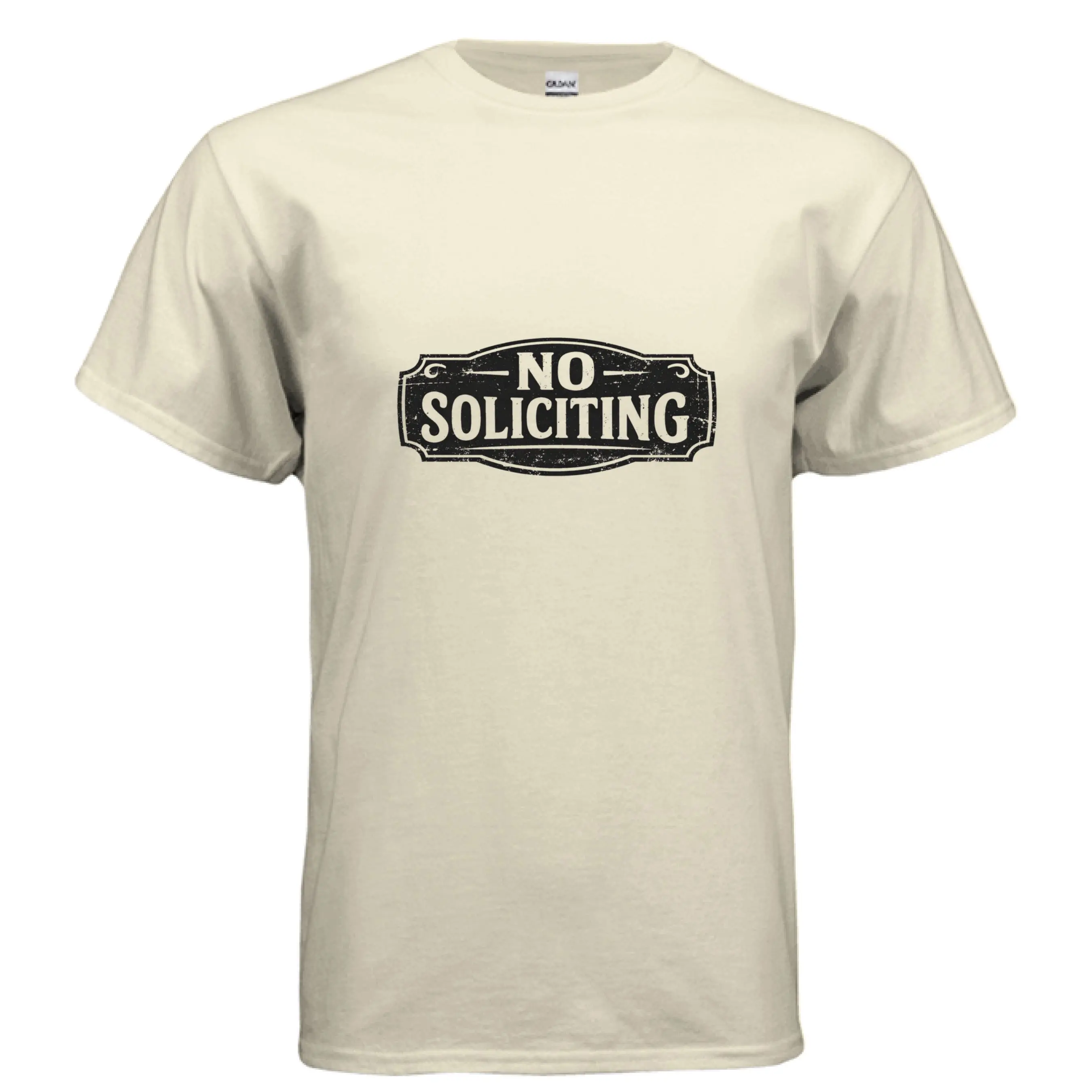 Clear, direct, and intentionally unmissable. The No Soliciting tee takes its cue from classic business window signage, pairing bold lettering with a lightly distressed, vintage-inspired finish.