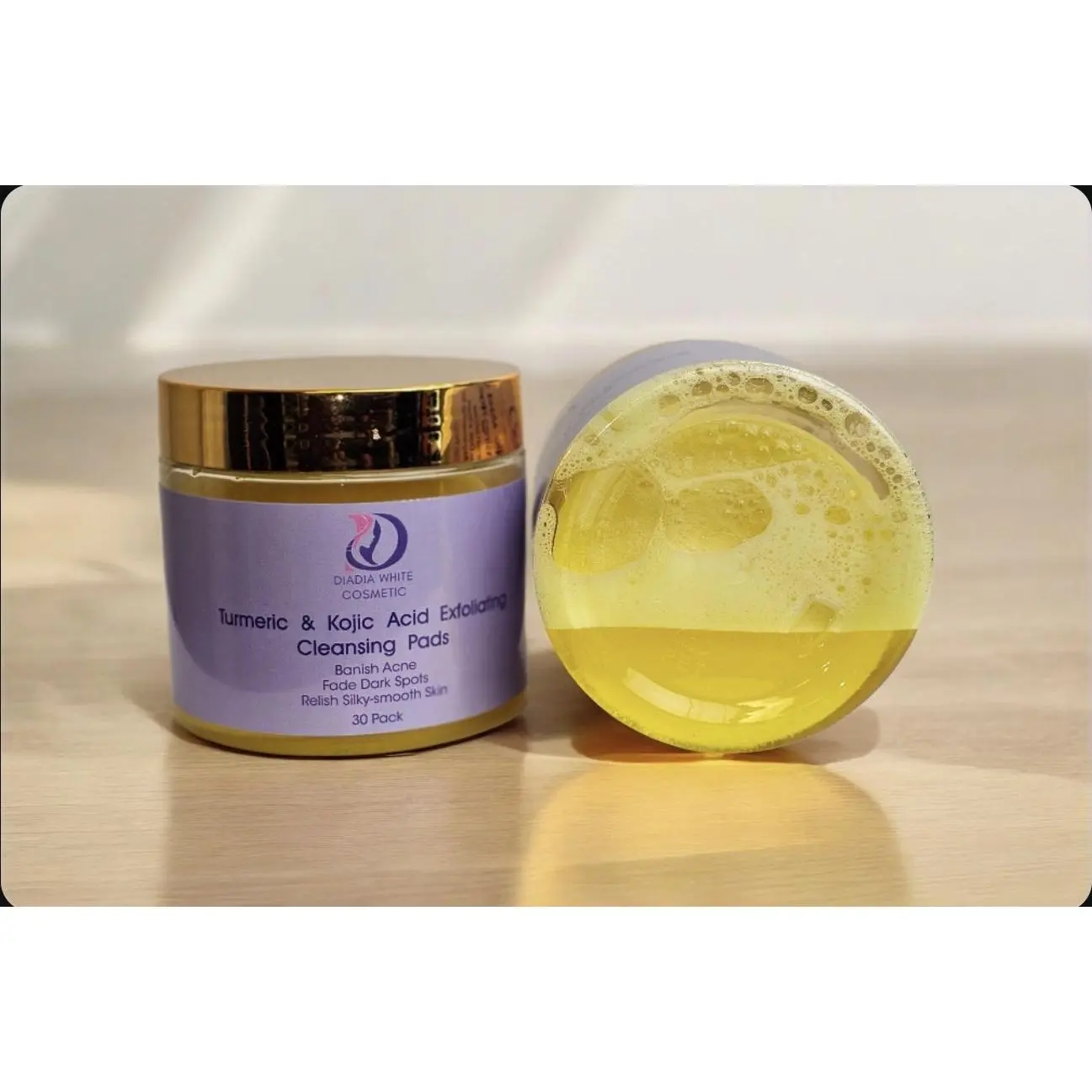 Introducing the DIADIA WHITE COSMETIC Turmeric & Kojic Acid Exfoliating Cleansing Pads, your new essential for a brighter, smoother, and clearer complexion. These powerful, pre-soaked pads are formulated with two skin-loving ingredients to target common skin concerns and reveal a radiant glow.