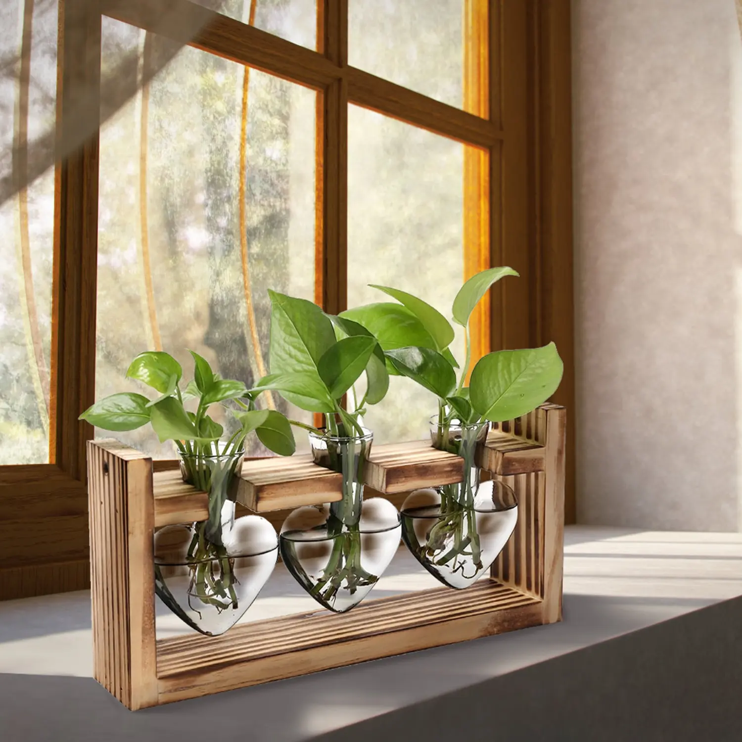 Premium Craftsmanship: Features a sturdy, natural wooden stand paired with clear, heat-resistant glass bulbs. Built to last and display your plants beautifully.