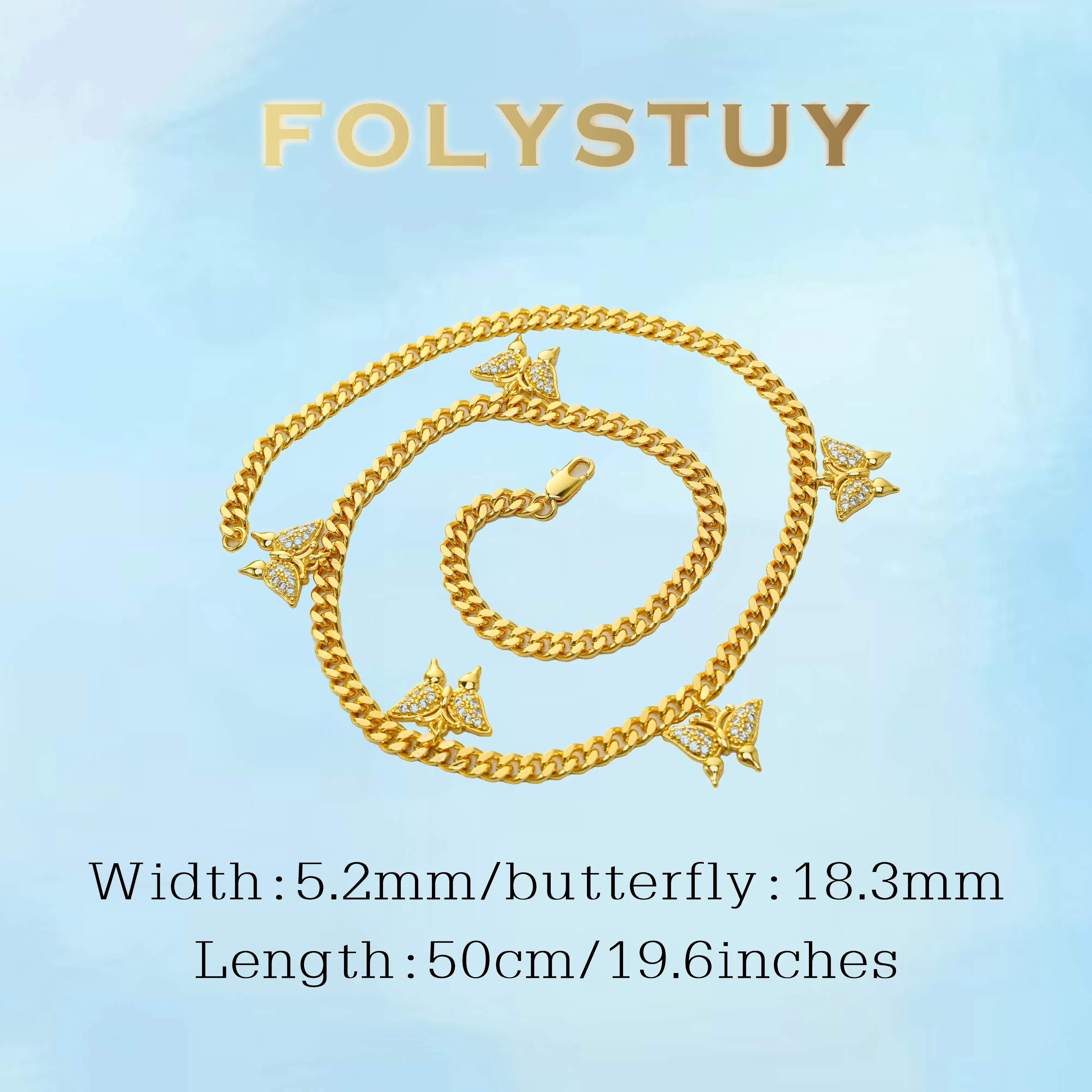 [FOLYSTUY (Y137)]Sparkly Butterfly Cuban Chain Necklace, 0.20" Width 19.6" Length Trendy Fashion Jewelry