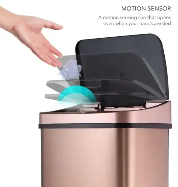 • Hands-free lid opens with a simple wave of the hand