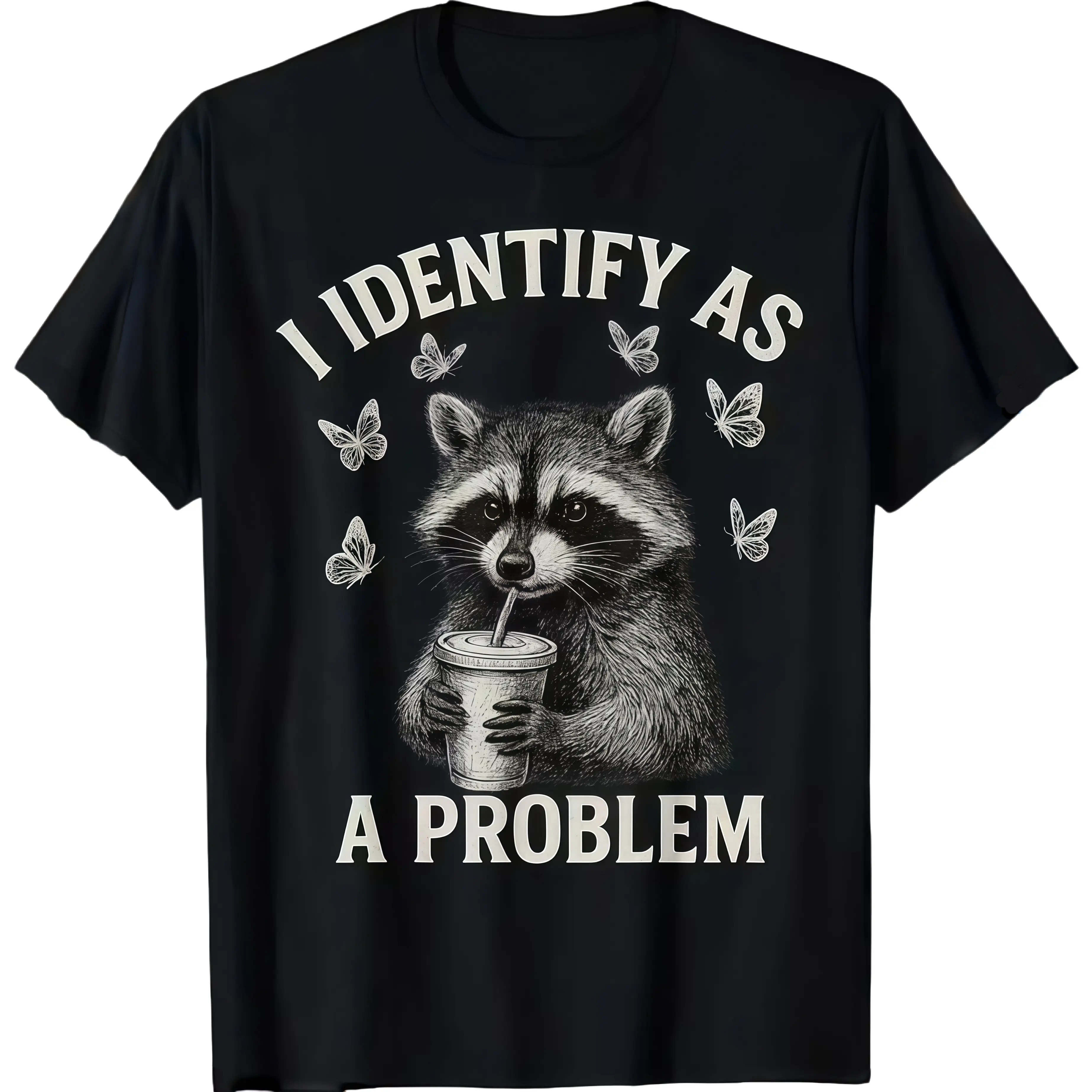 2026 Funny Raccoon Drinking Juice T-Shirt - Relatable "I'm a Problem" Mood Tee - Cute Animal Graphic Short Sleeve Casual Streetwear Menswear Streetwear
